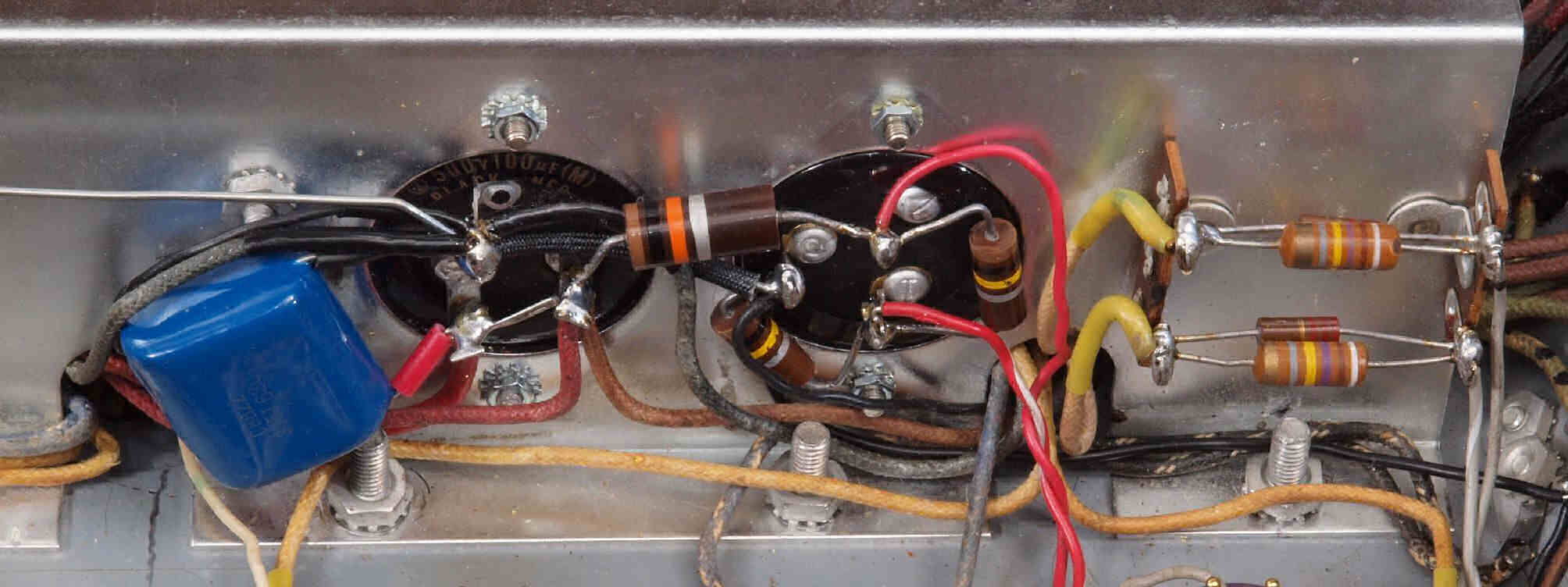C32. 修理後 V8−V9(6L6GC)ソケット周り配線、電解コンデンサー2個追加