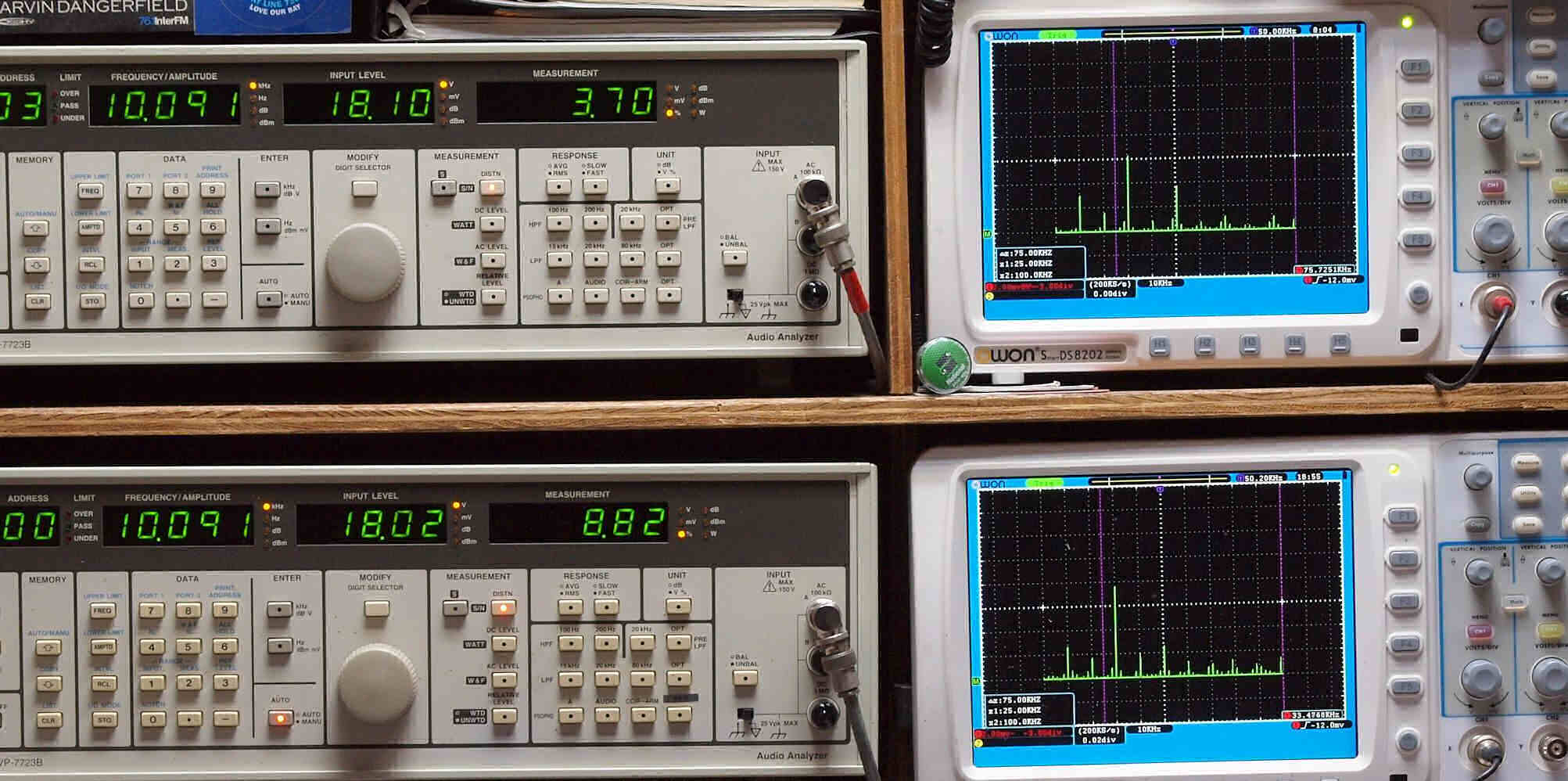 よって、ダイアル設定出力レベルより低くなります。測定機器の仕様や整備の様子はこちら、「VP−7723B」「VP−7201A」。 FFT画面の見方はこちら。