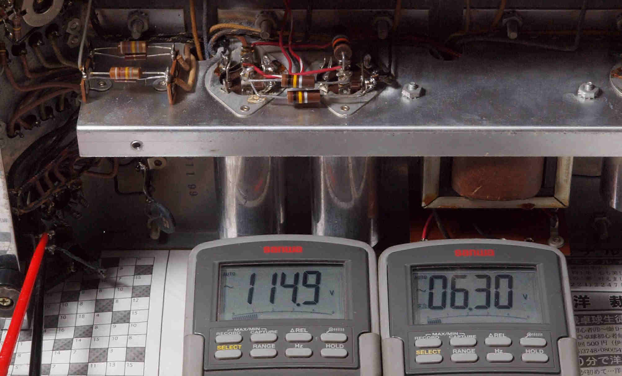 T4. 入力電源電圧=115V、 その時のヒータ電圧=6.3V。