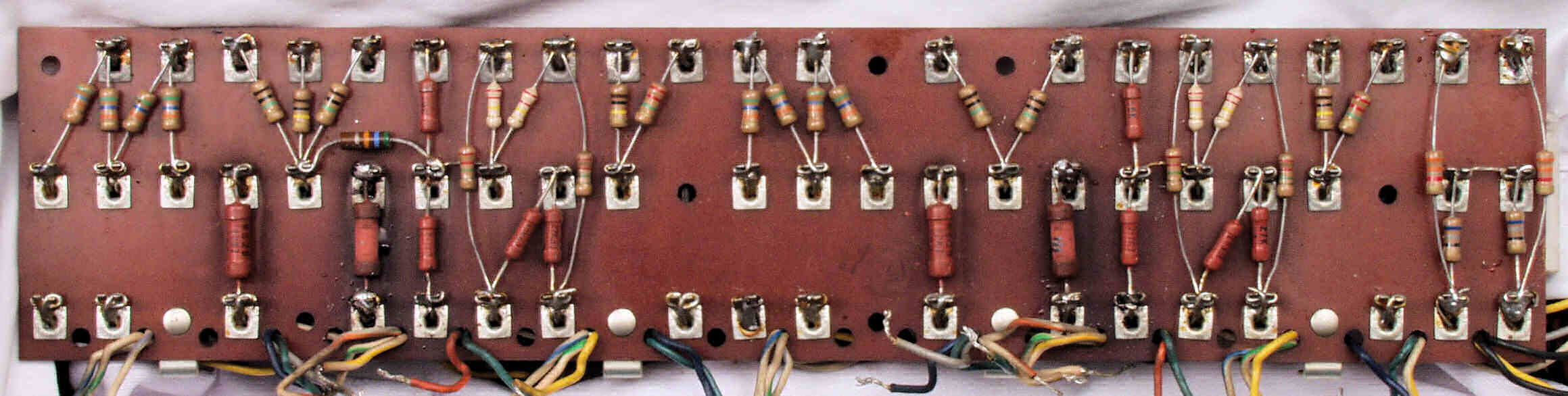 | A31. 点検中 RL共前段のプレート抵抗が焼損しています このAMPは終段6L6GCと前段の12AX7・12BH7と直結なので、良質なものを選択する配慮が必要。 前段12AX7・12BH7の不良は終段6L6GCをダメにします。 |