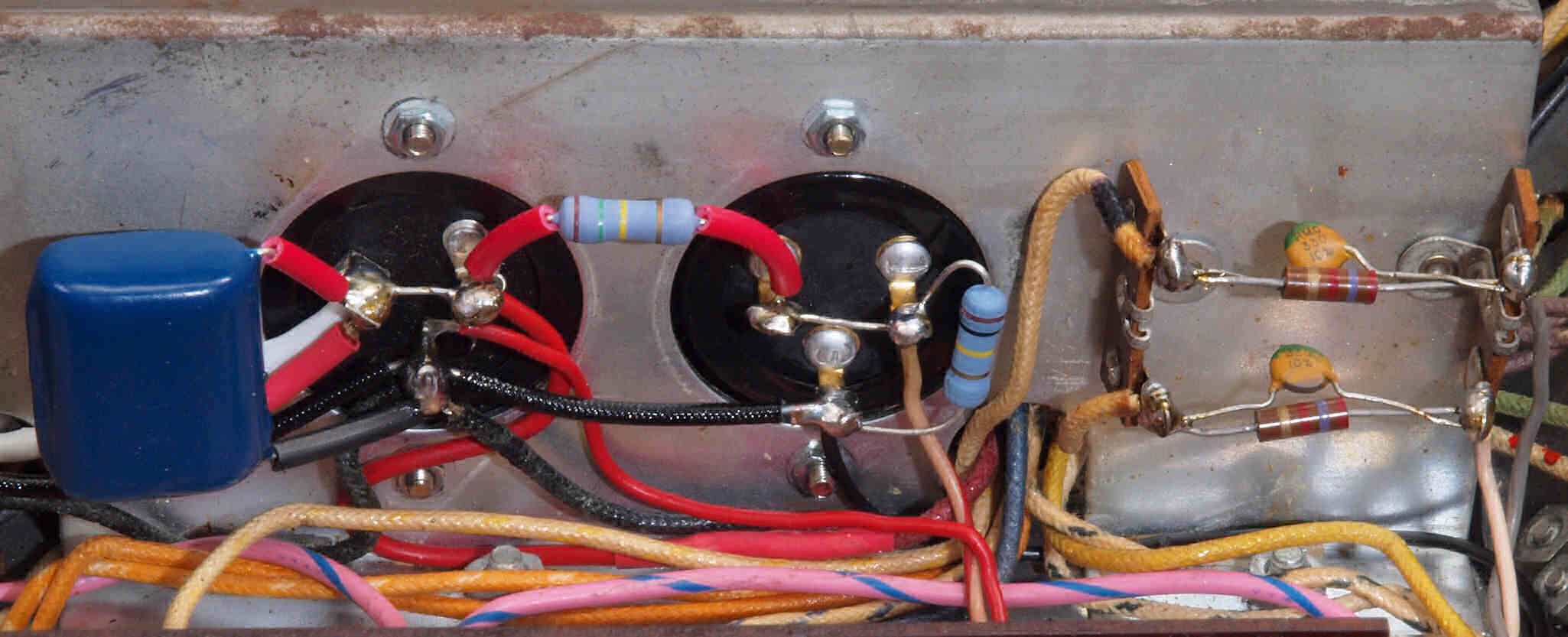 | C32. 修理後 R側KT−88ソケット裏配線、ソケットを交換し、配線完了。 抵抗2個交換。 | ||||||||||||||||||||||||