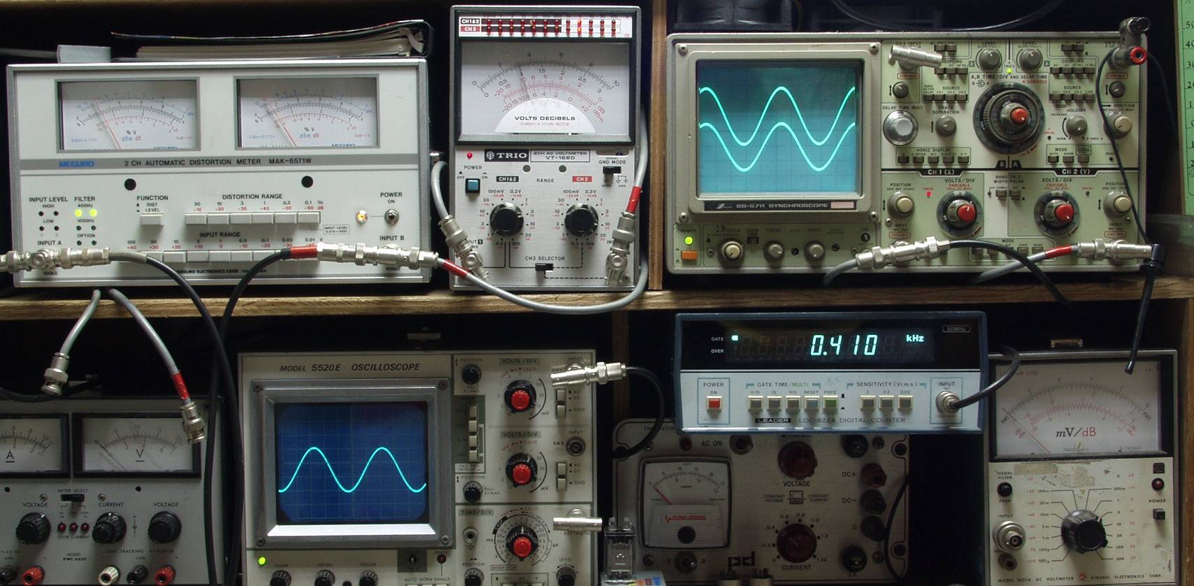 | EE. 上位測定器による 調整・測定。 下のオーディオアナライザーVP−7732Aで自動測定。 |