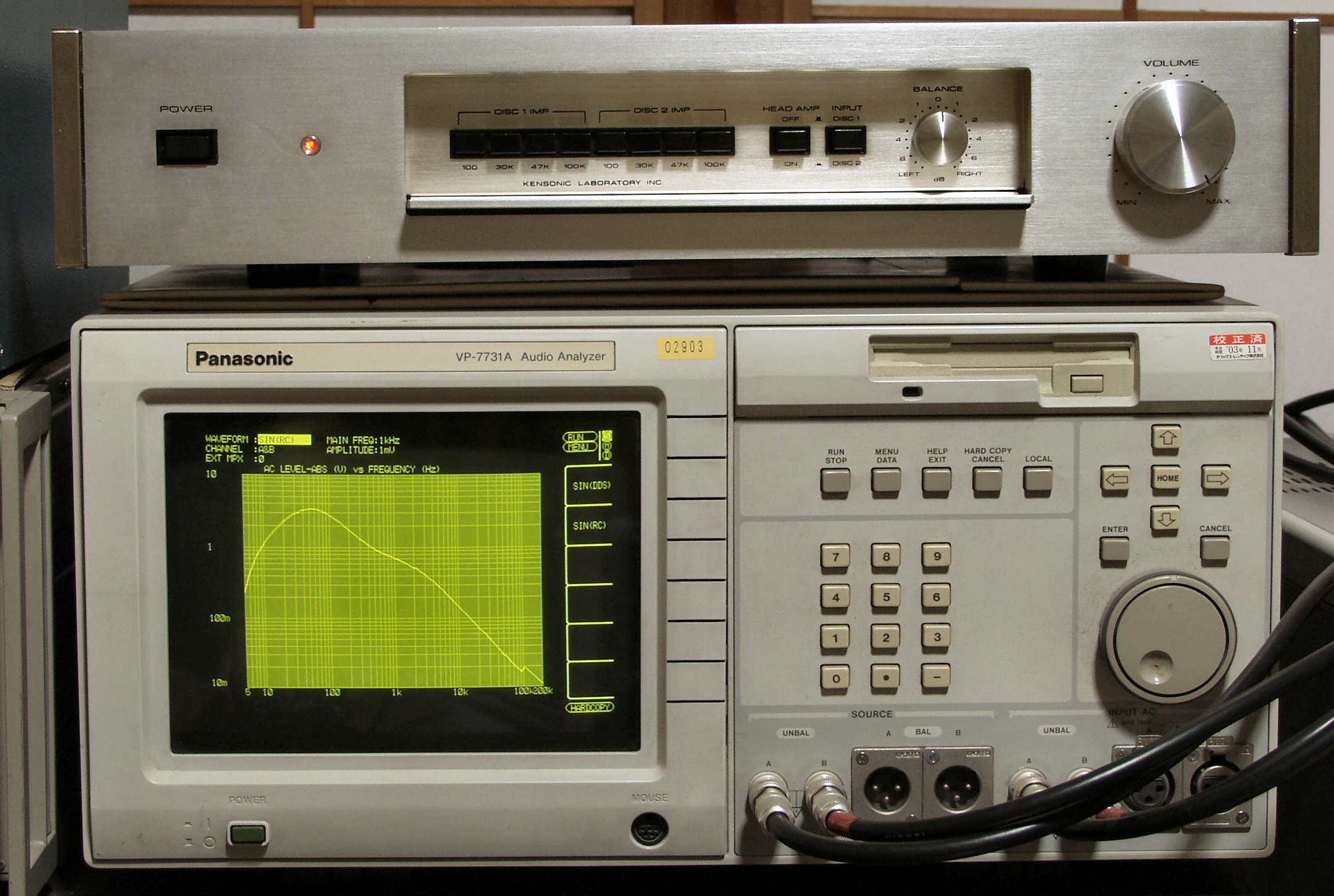 | EE. 上位測定器による 調整・測定。 F0. 下のオーディオアナライザーVP−7732Aで自動測定。 |