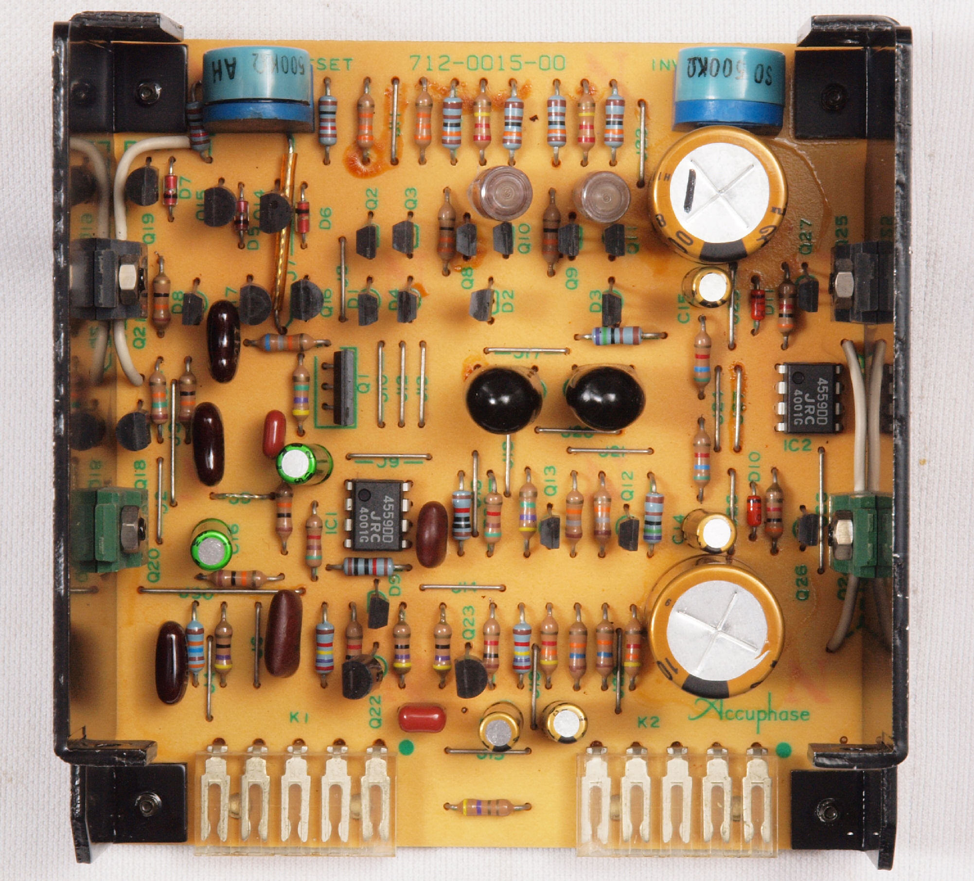 C22. 修理後 L側MC_AMP基板。OP−AMP2個、半固定VR2個、電解コンデンサー8個交換。