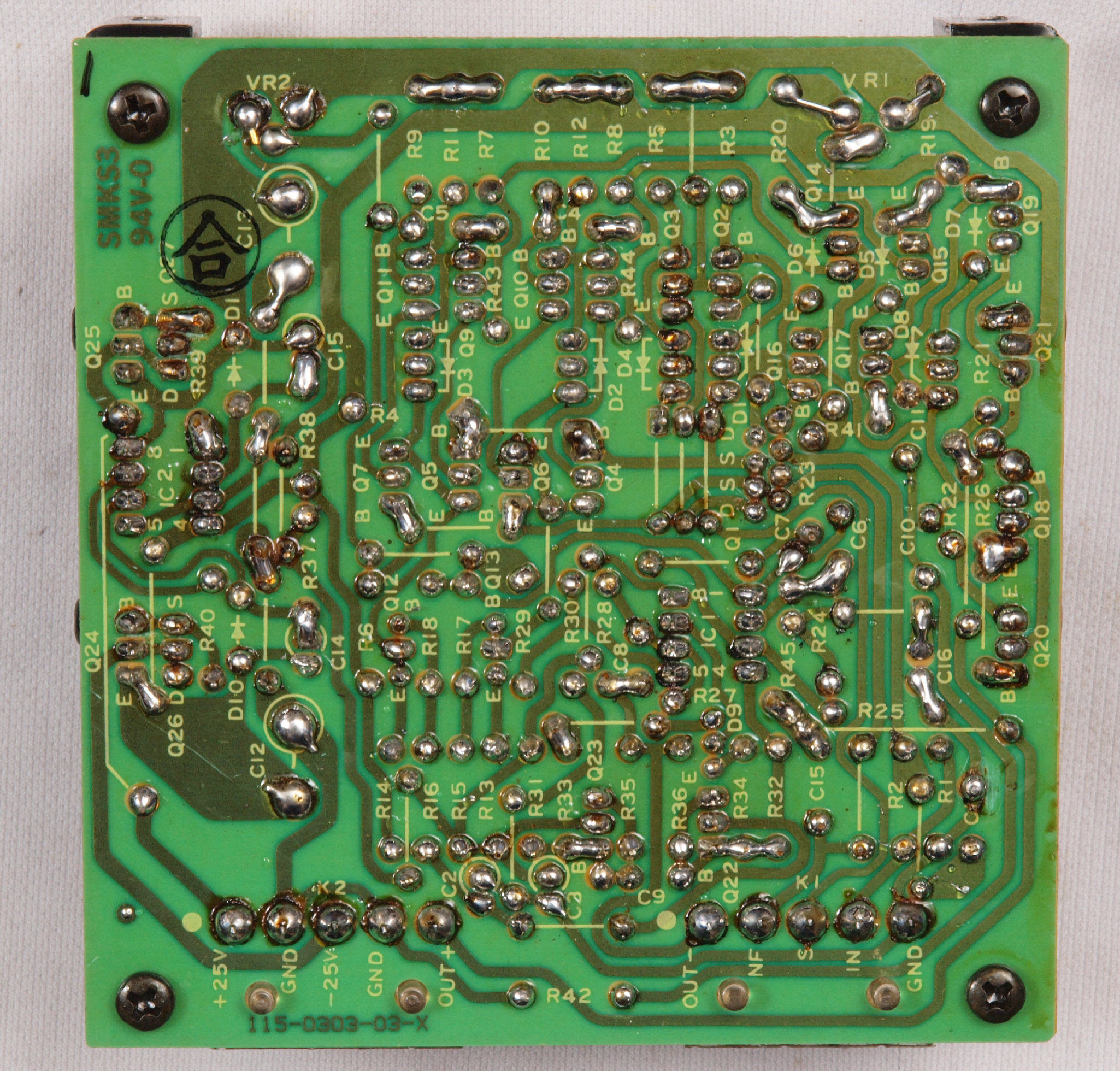 C34. 修理(半田補正)後 R側EQ_AMP基板裏。 半田を全部やり直す。