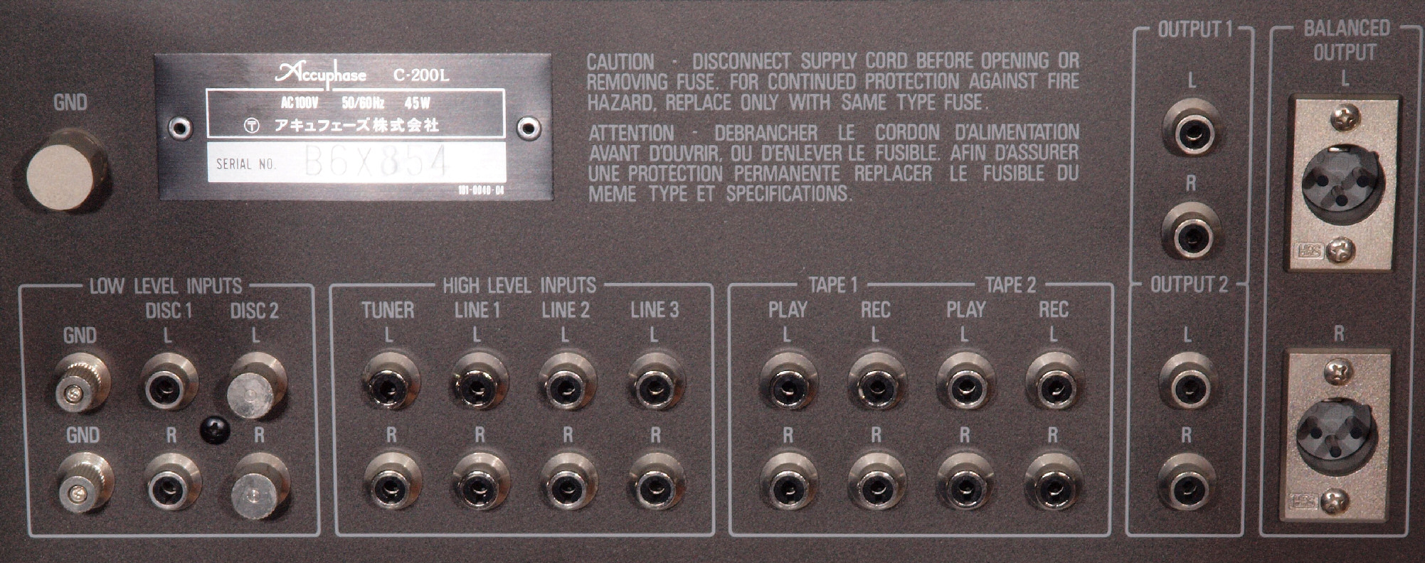 Tuner、Line、Tape play=126mV/31.5mV/20kΩ