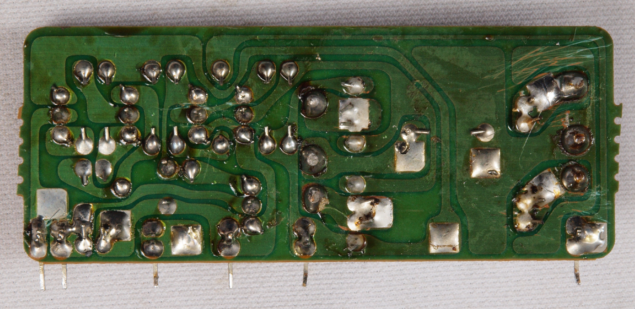 | C213. 修理中 EQ−AMP。 トルエン溶媒の接着剤を取り去り、ジャンパー線を交換後、コートを塗布後。 | ||||||||||||||||||||||||||||||||||||||||||||||||||||||||
