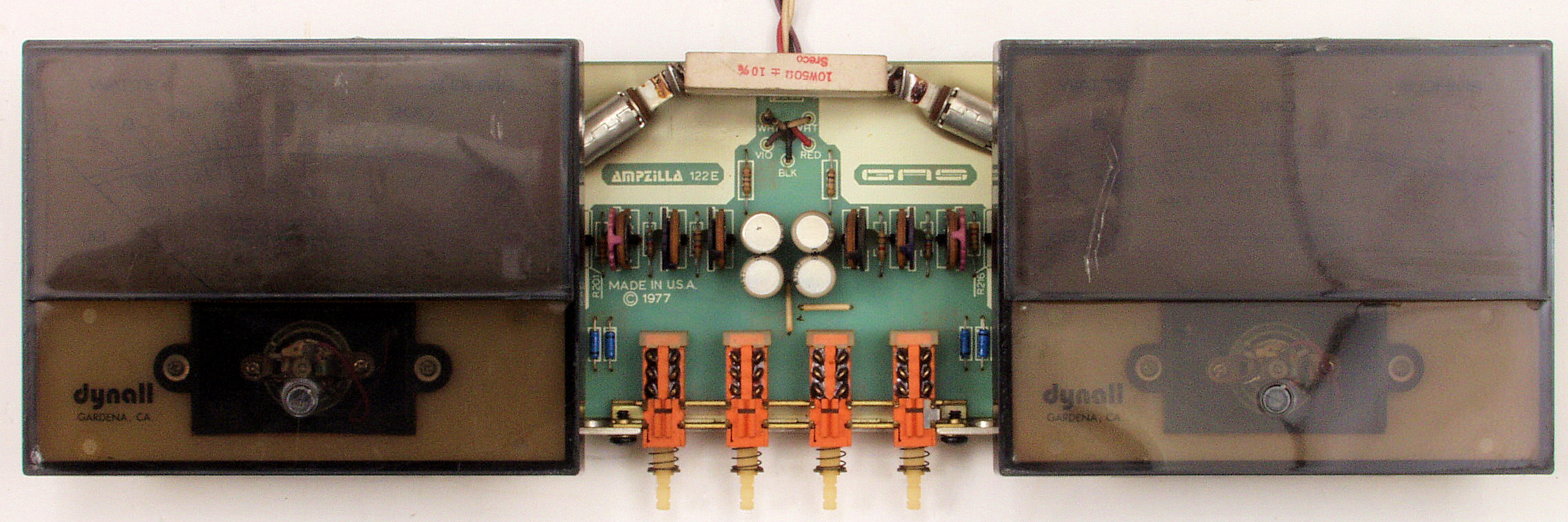 上段中左 歪み率計=出力の歪み率測定 左メータ=L出力、右メータ=R出力