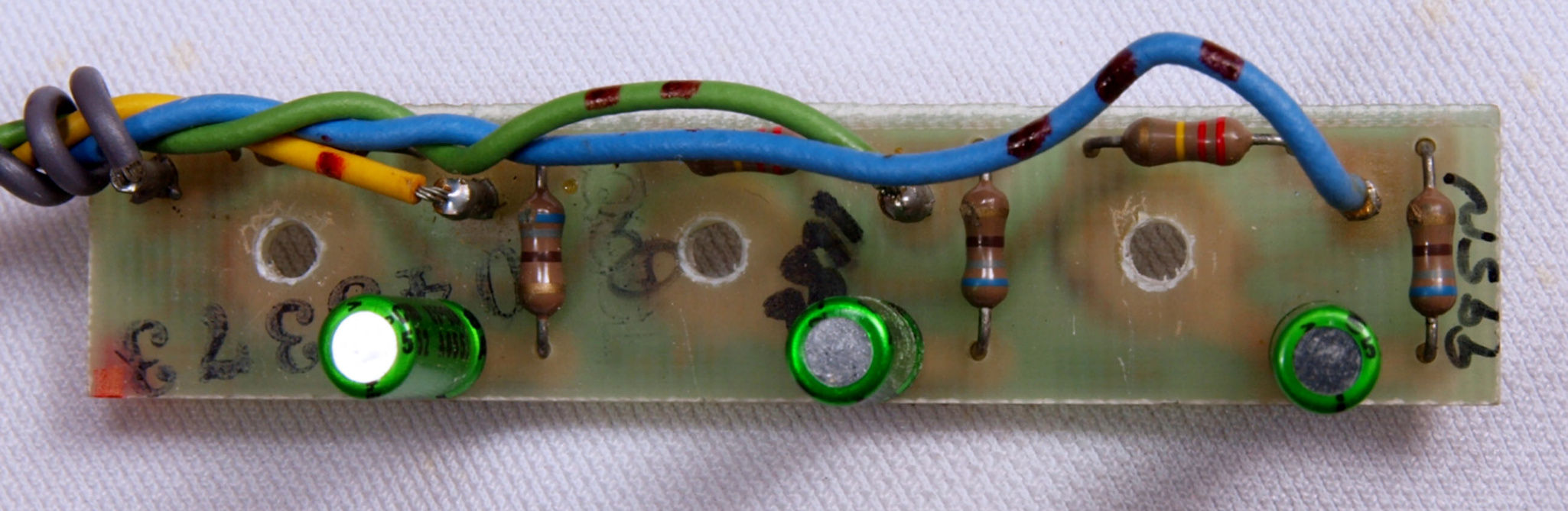 | C62. 修理後 L側入力RAC端子基板。 電解コンデンサー3個交換、セラミックコンデンサー3個追加。 | ||||||||||||||||||||||||||||||||||||||||||||||||||