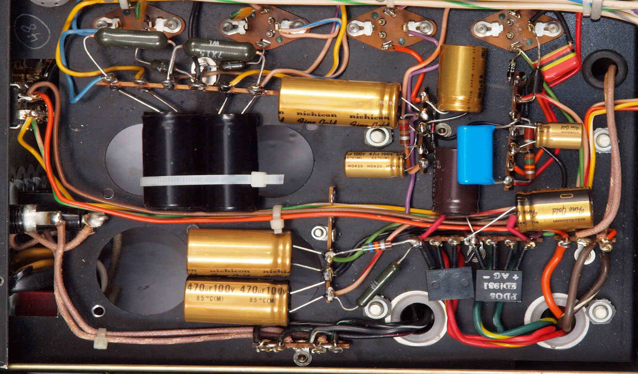 C32. 修理後 電源部分 電解コンデンサー9個増量交換、フイルムコンデンサー2個追加