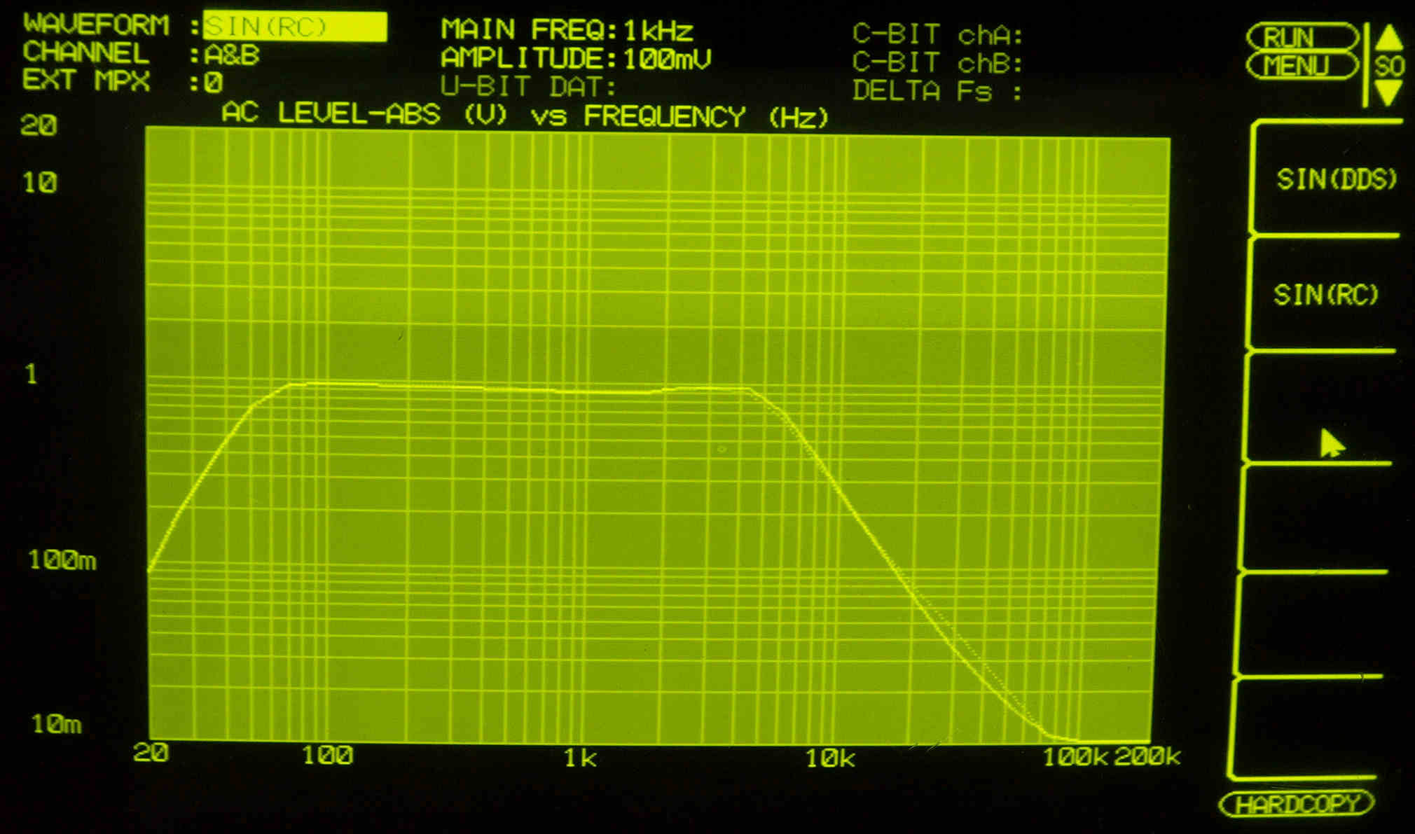 真空管AMPの組み合わせの為か、この下の周波数(30kHz)からフイルターが効いている。