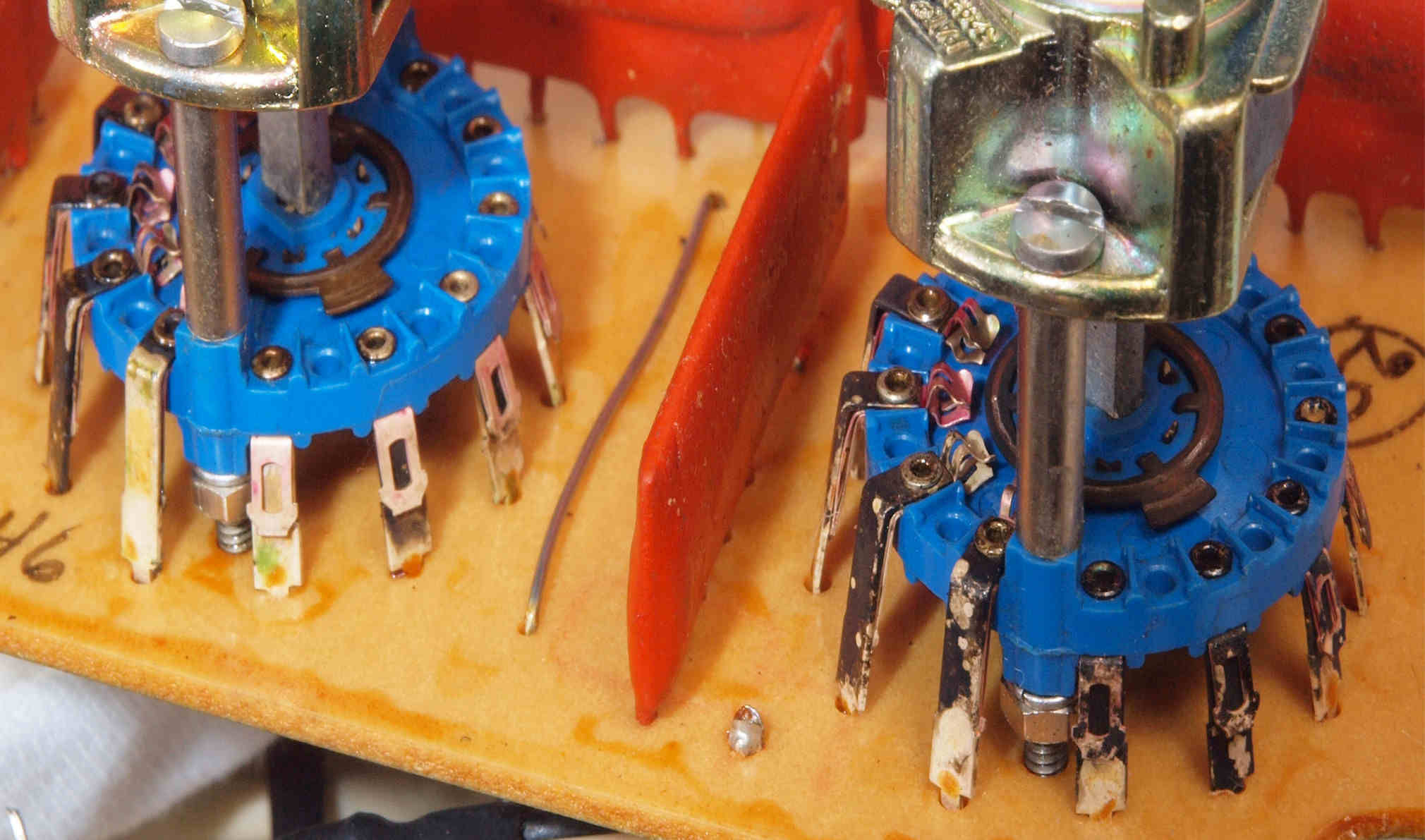 C62. 修理中 バランスVR・ラウドネスSW点検、 接点復活材が使用されていない。