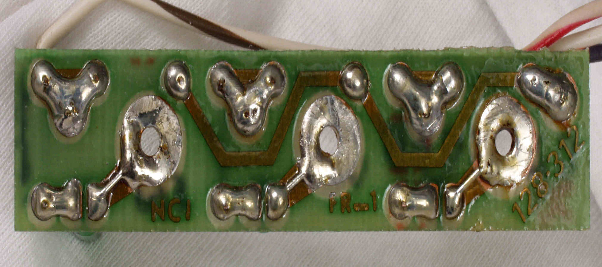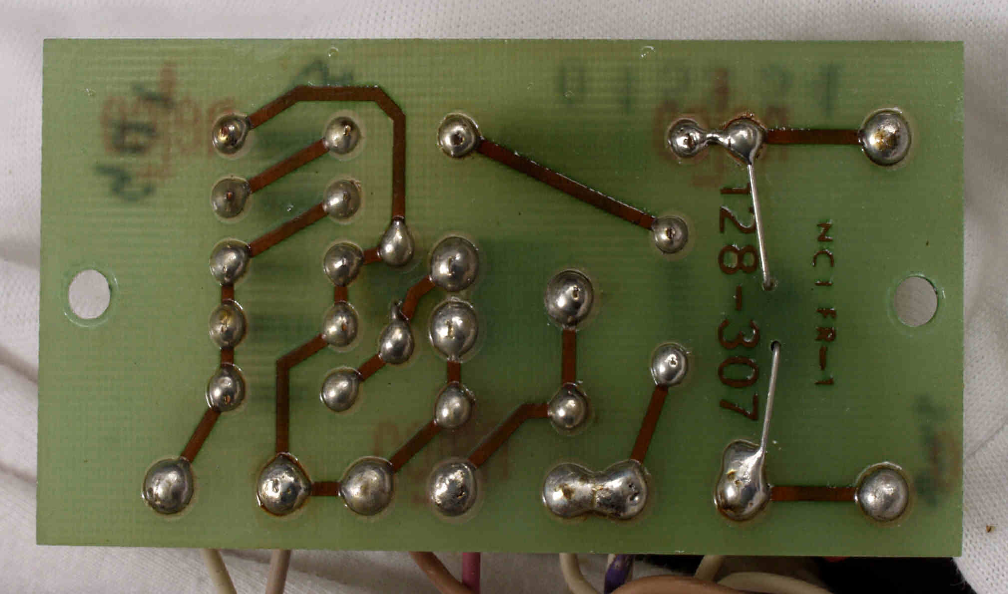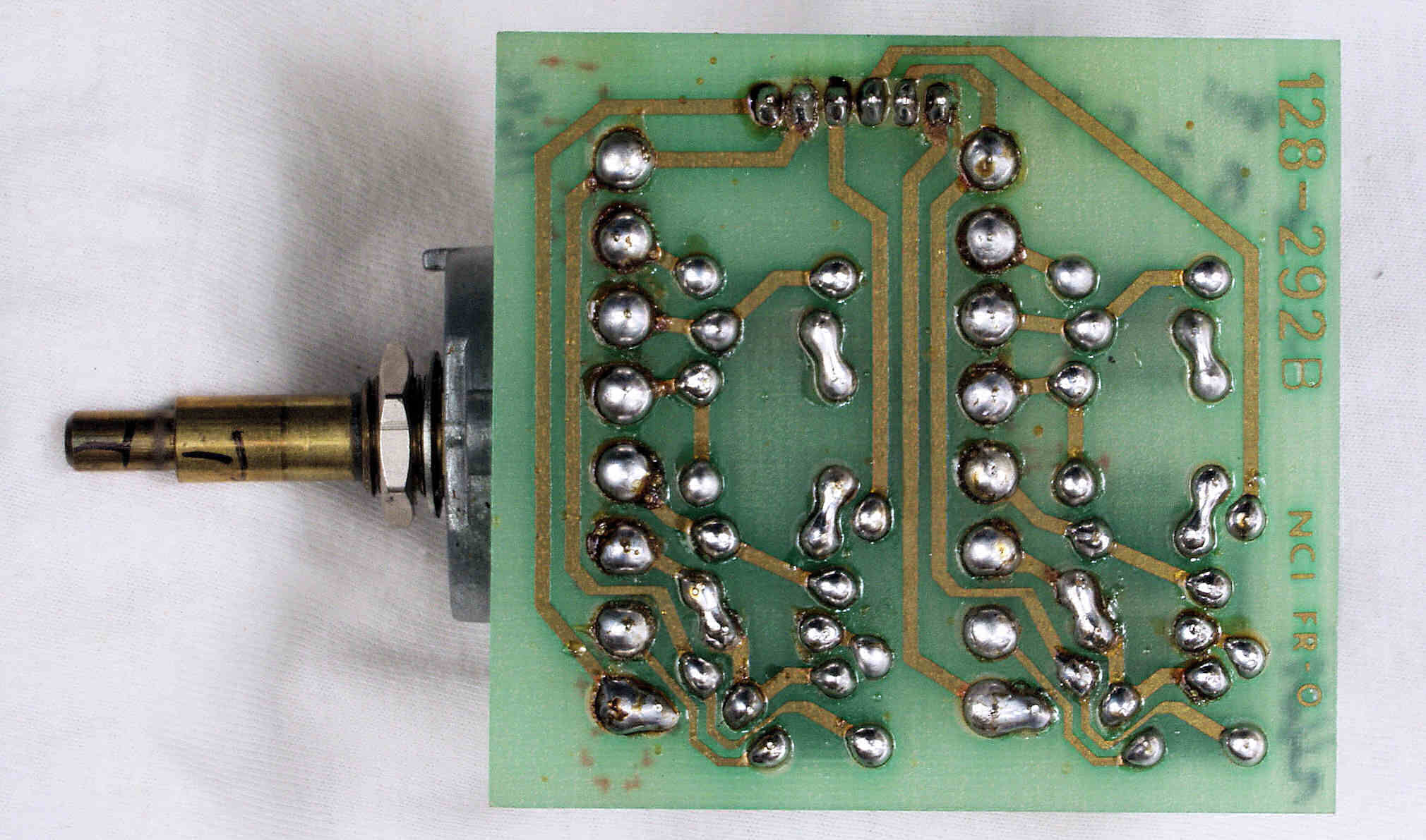 C64. 修理修理(半田補正)後 TREBLコントロール基板裏。 半田を全部やり直す。