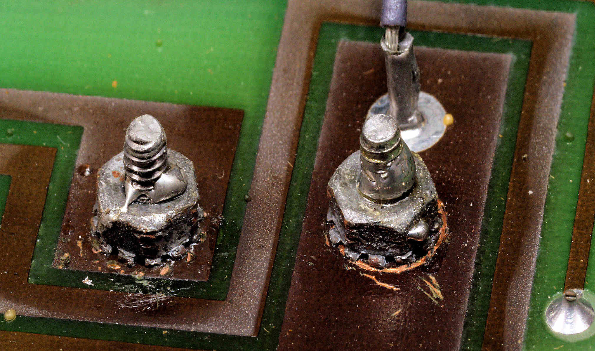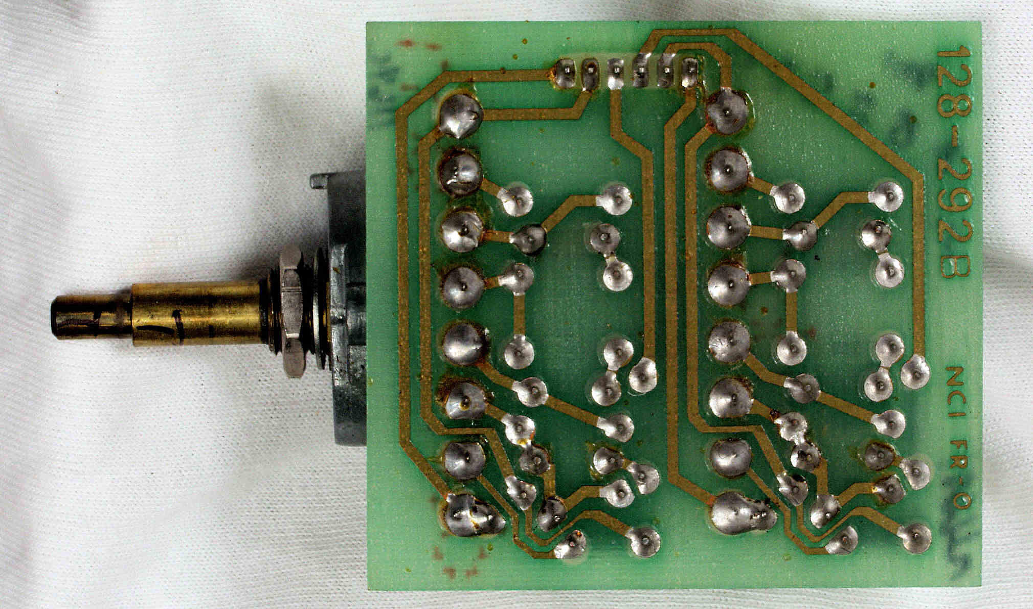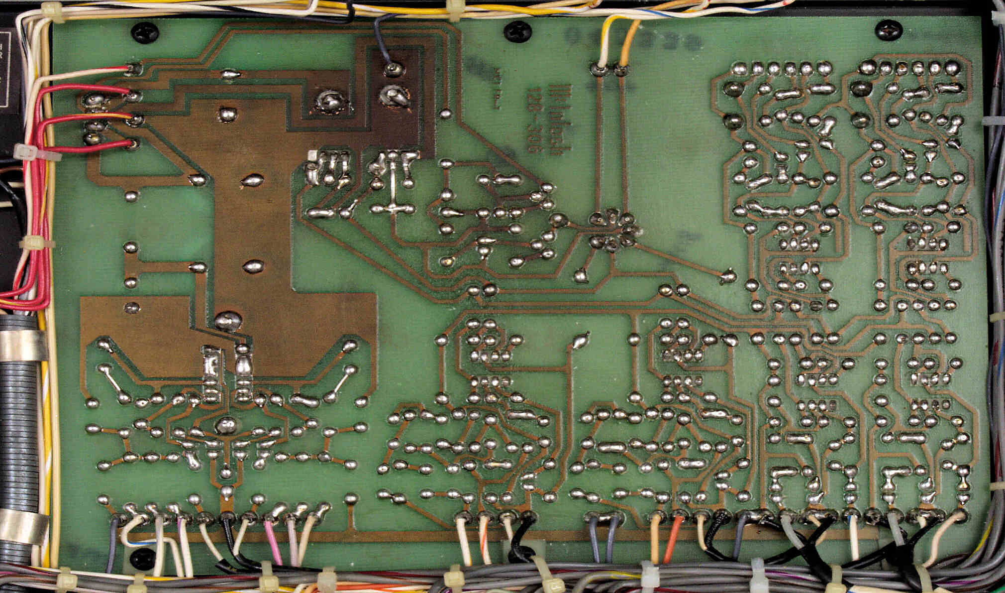 C64. 修理修理(半田補正)後 TREBLコントロール基板裏。 半田を全部やり直す。