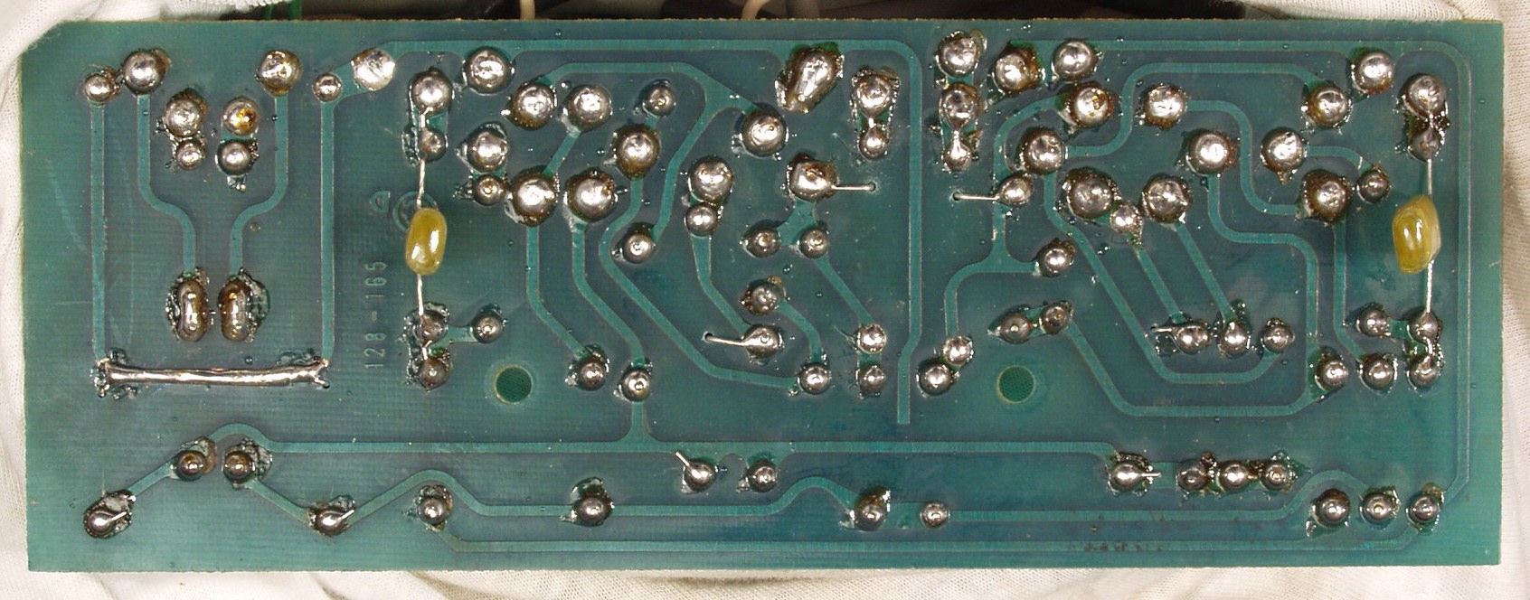 | C−3D. 修理(半田補正)後 初段基盤裏。 半田を全部やり直す。 | ||||||||||||||