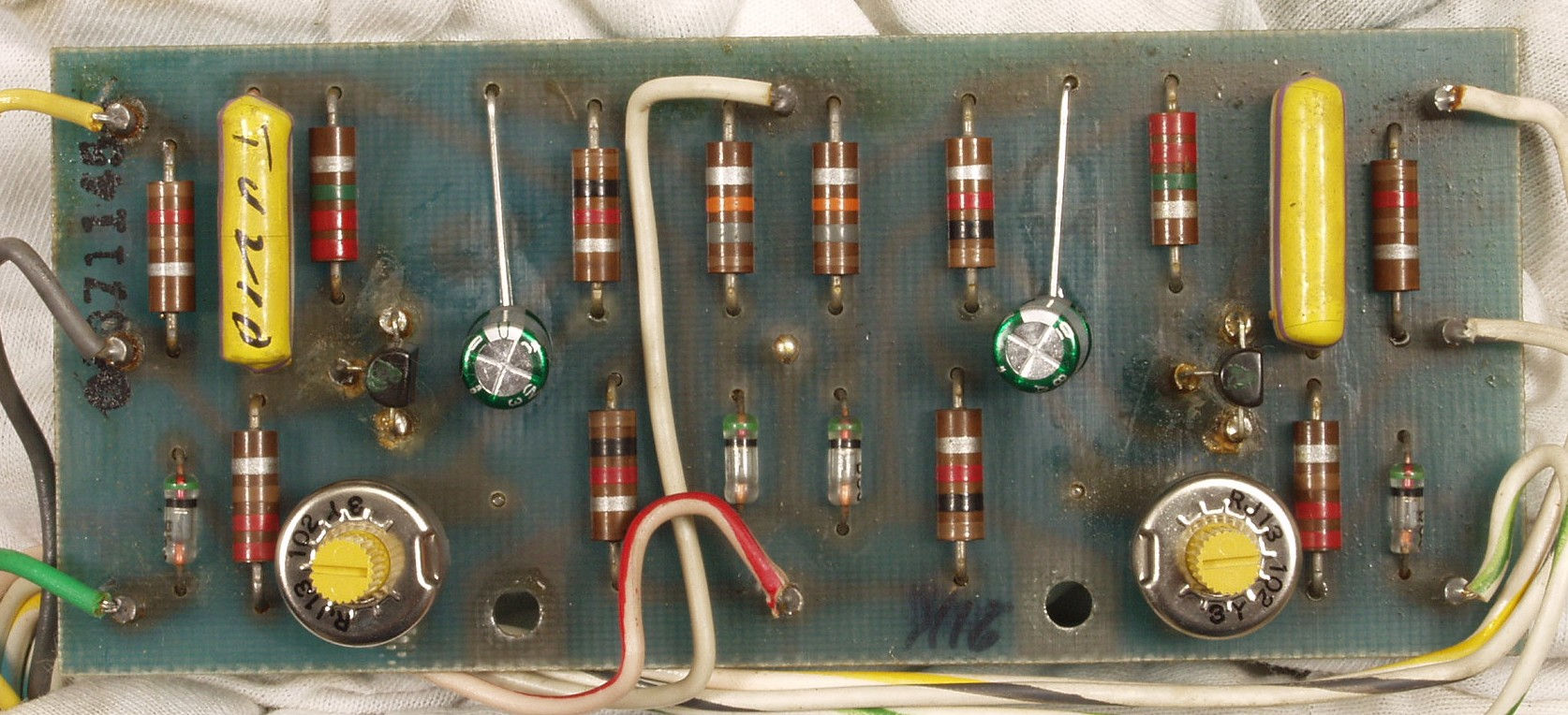 | C−3B. 修理後 初段基盤 電解コンデンサー6個交換 | ||||||||||||||