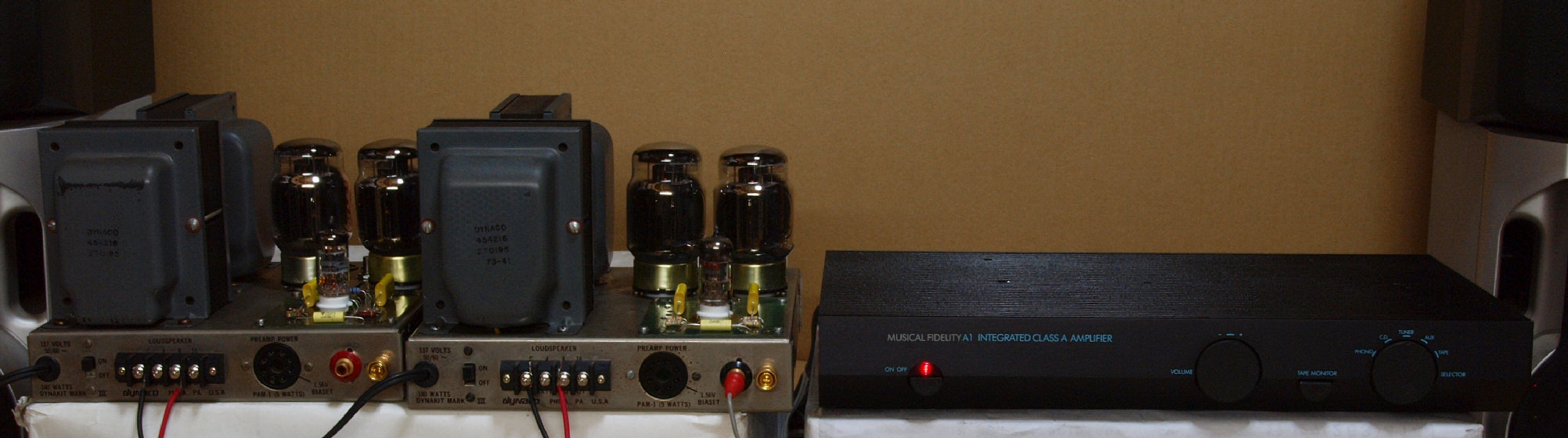 | E6. 完成 24時間エージング。 左は「Dynaco Mark V. 3台目」、中は「Dynaco Mark V. 4台目」。 | ||||||||||||||||||