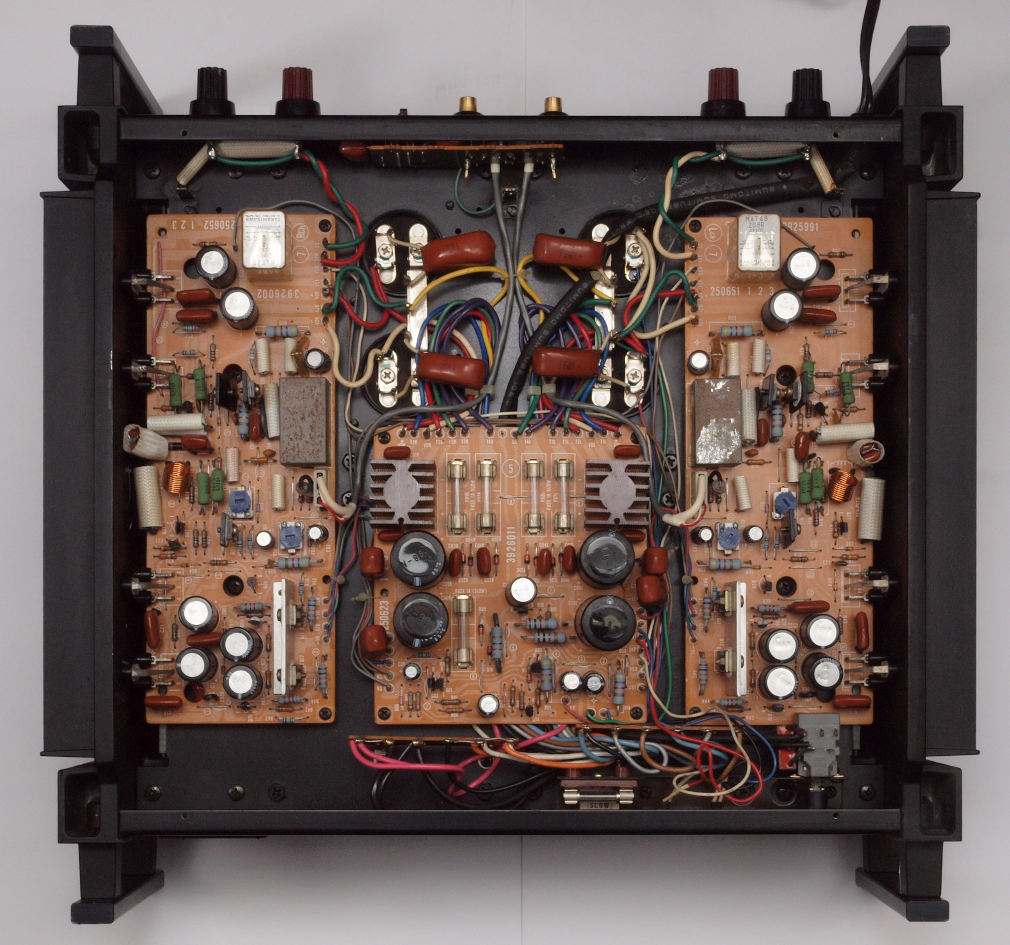 フューズ入り抵抗全部、電解コンデンサー9個、TR(トランジスター)2個交換
