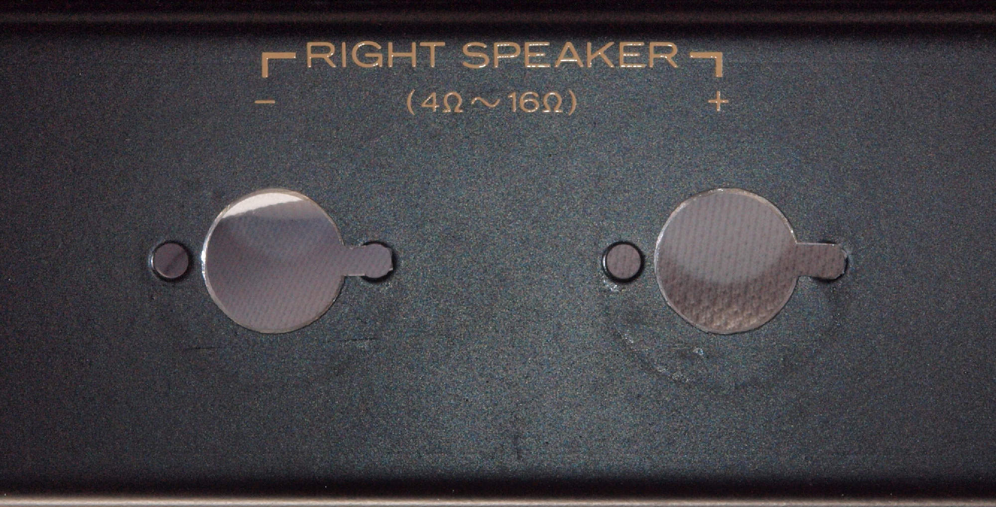 | 注意 このAMPはアースラインが浮いています。 AMPのシャーシにSPの線(アース側)やプリAMPのアースもも接続してはいけません。 RL−SPのアース線も接続(共通)してもいけません、+−の撚りのあるのも使用出来ません。 又、DC(directconnection)入力が可能ですが、絶対に使用しないこと=ここ参照 |