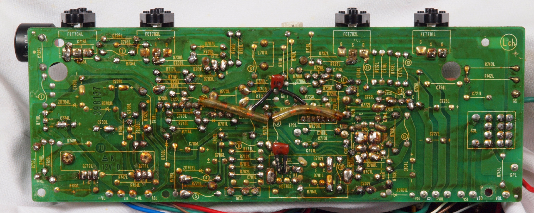 | C15. 修理(半田補正)後 R側ドライブ基板裏 半田を全部やり直す。 普通はこれで完成。 |