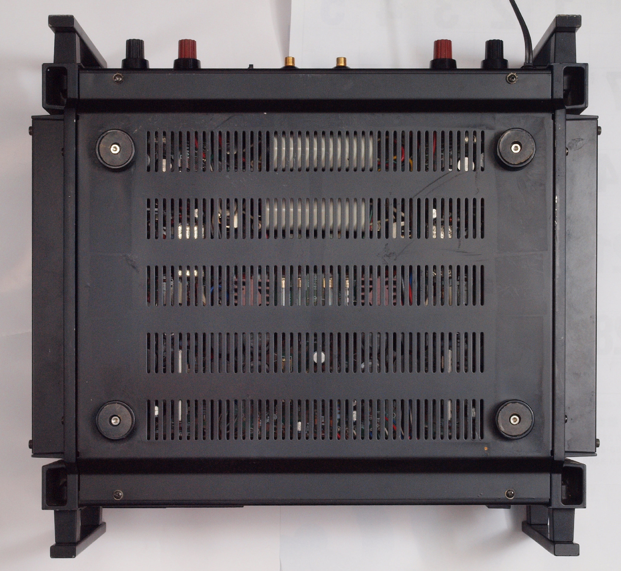 | 注意 このAMPはアースラインが浮いています。 AMPのシャーシにSPの線(アース側)やプリAMPのアースもも接続してはいけません。 RL−SPのアース線も接続(共通)してもいけません、+−の撚りのあるのも使用出来ません。 又、DC(directconnection)入力が可能ですが、絶対に使用しないこと=ここ参照 |