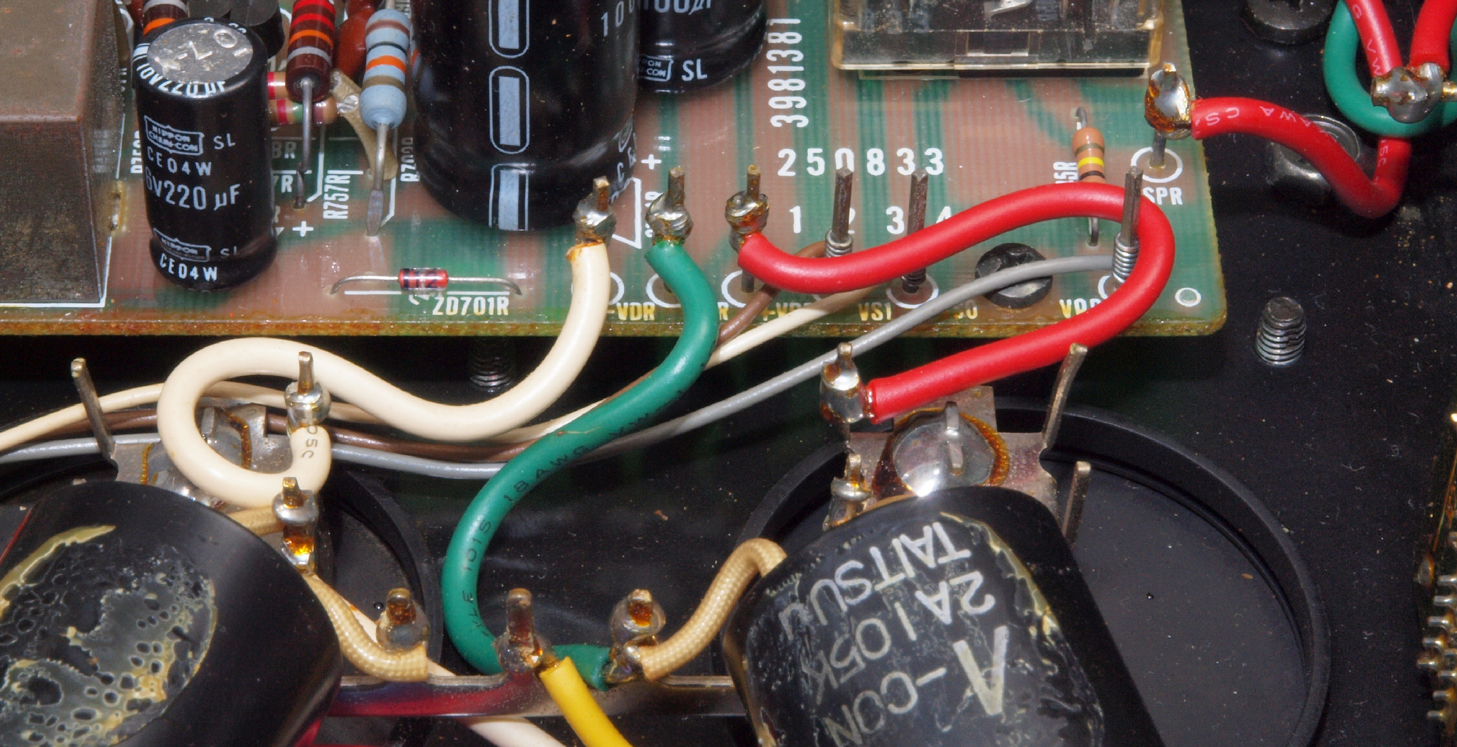 | CA5. 修理前 R側ドライブ基板−電源基板へのラッピング線 |