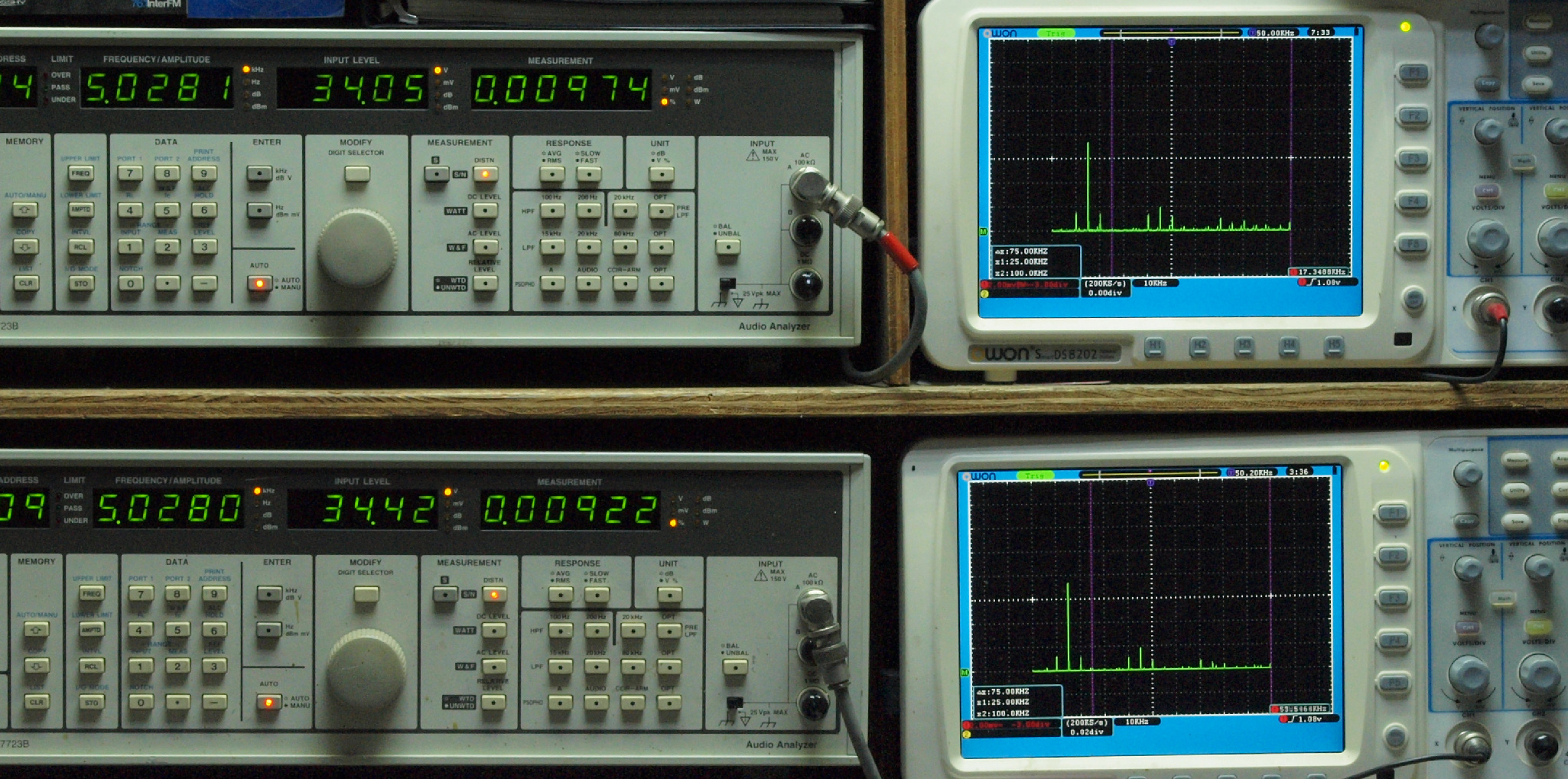 よって、ダイアル設定出力レベルより低くなります。測定機器の仕様や整備の様子はこちら、「VP−7723B」「VP−7201A」。 FFT画面の見方はこちら。