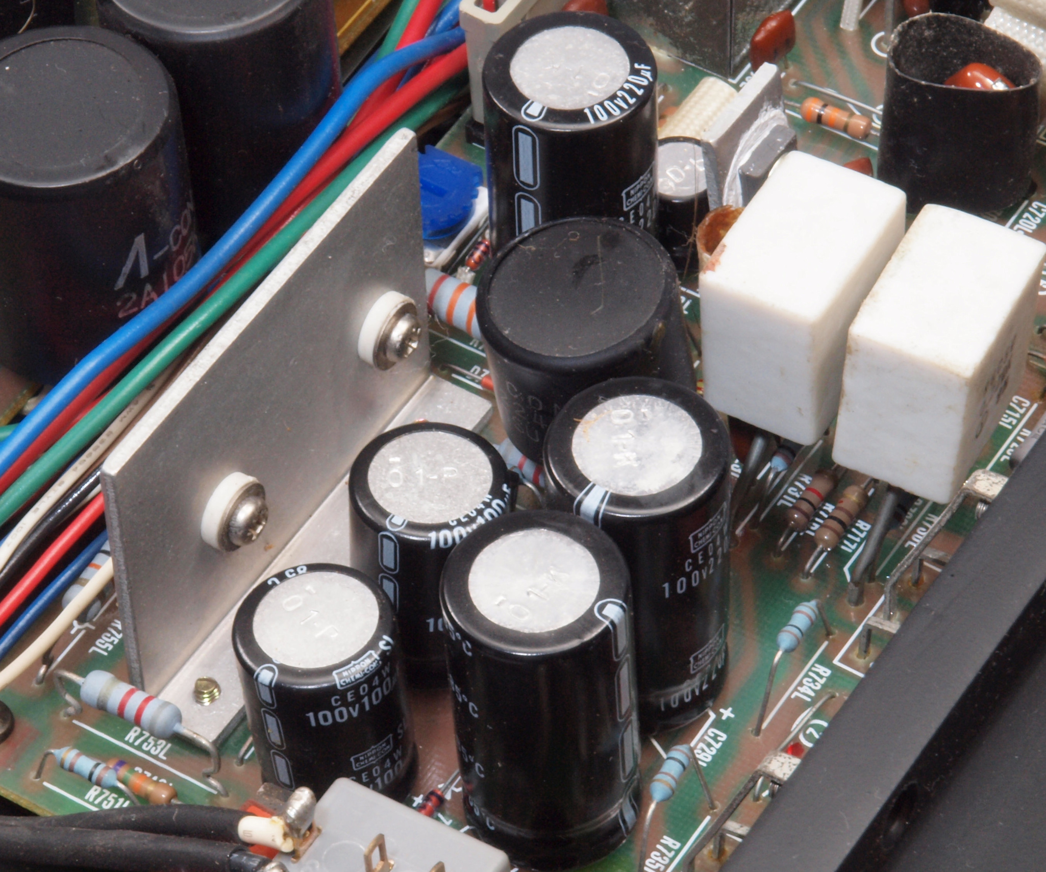 | A52. 点検中 電解コンデンサー外観比較、220μ/100V |
