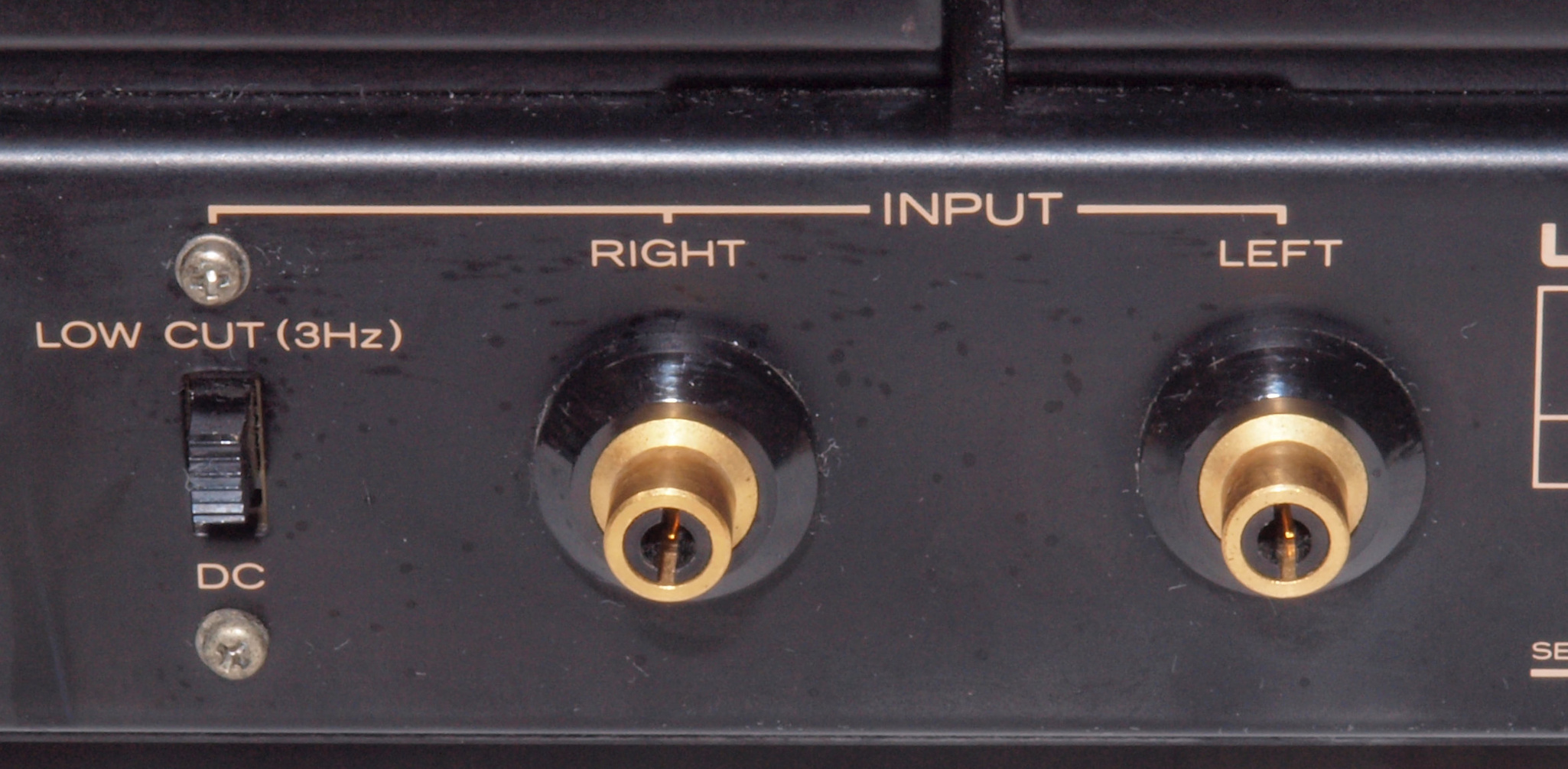 | 注意 このAMPはアースラインが浮いています。 AMPのシャーシにSPの線(アース側)やプリAMPのアースもも接続してはいけません。 RL−SPのアース線も接続(共通)してもいけません、+−の撚りのあるのも使用出来ません。 又、DC(directconnection)入力が可能ですが、絶対に使用しないこと=ここ参照 |