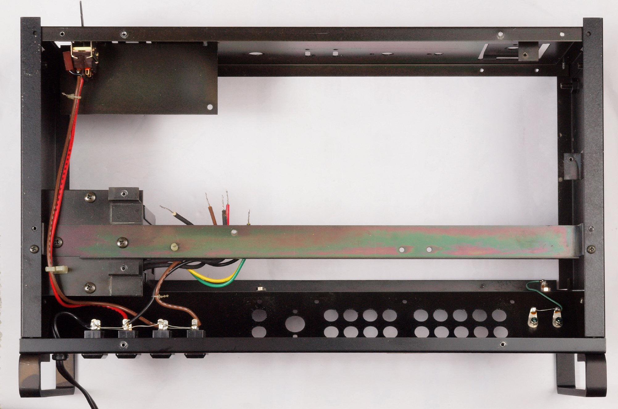 C01. 修理中 基板を外したシャーシ、上から見る。