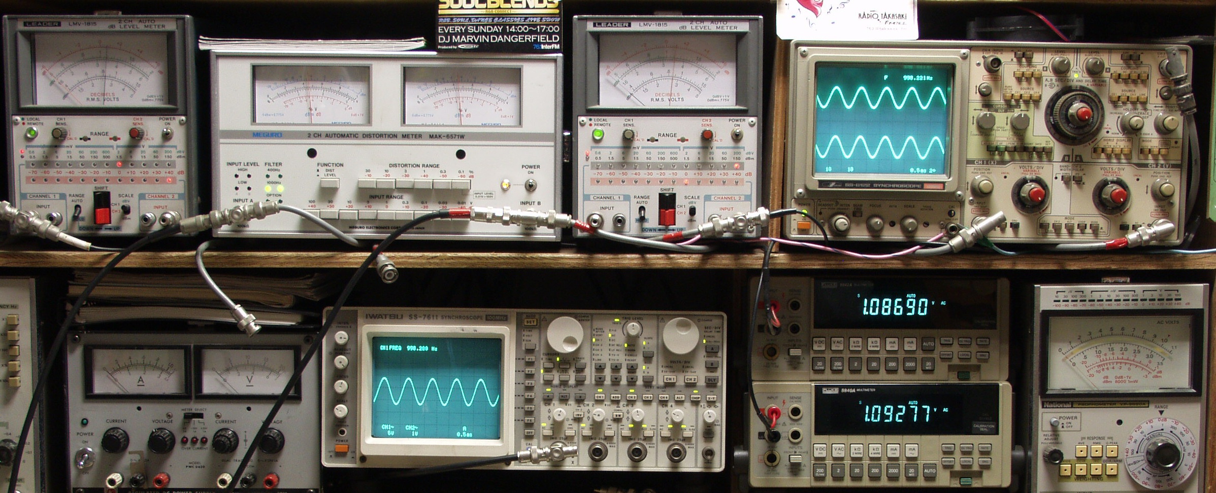 上段中左 歪み率計=出力の歪み率測定 左メータ=L出力、右メータ=R出力