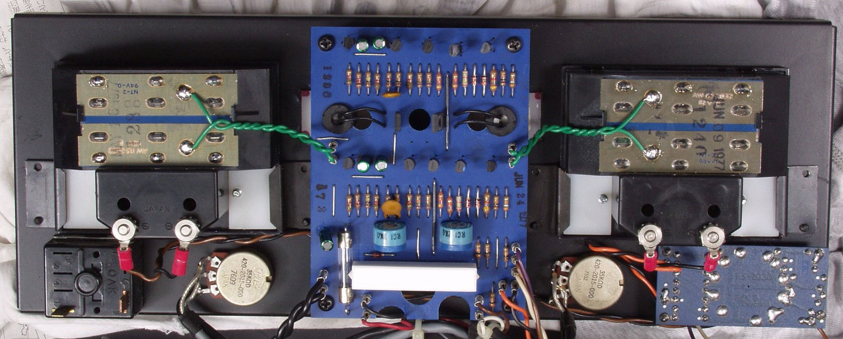 | C4B. 修理後 VUメーターAMP基盤 電解コンンサー5個、半固定VR2個、抵抗交換 | ||||||||||||||||||||||||||||