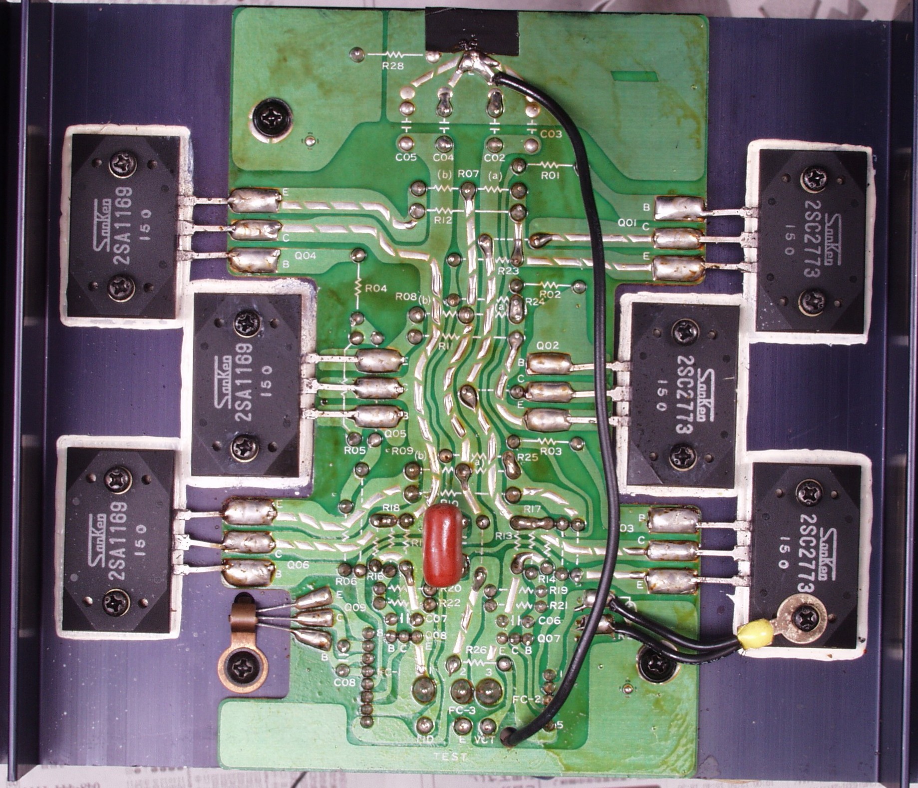 | C32. 修理(半田補正)後 R側終段TR(トランジスター)基盤。 | ||||||||||||||||||||||||||||||||||||||||||||||||||||||||||