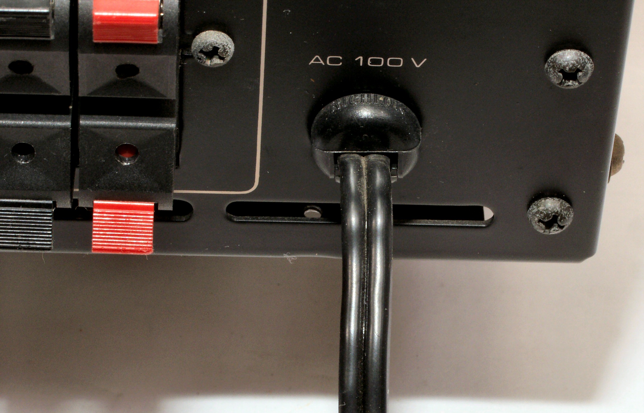 | A32. 点検中 経年変化で動作点大きくずれ ,A級使用でヨレヨレになった電源コード取り付け部。 | ||||||||||||||||||||||||||||||||||||||||||||||