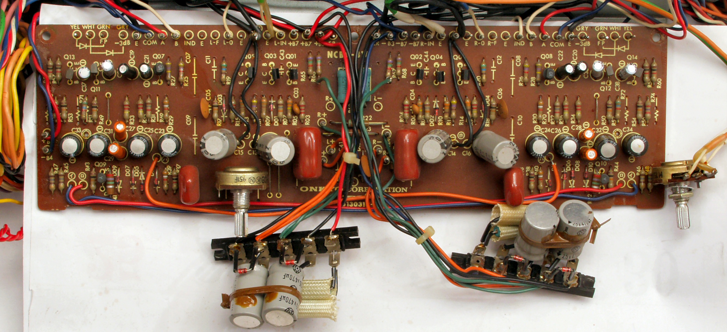 | C42. 修理後 プリAMP・ピークモニター基板 TR(トランジスター)6個、電解コンデンサー24個、フイルムコンデンサー4個交換 |