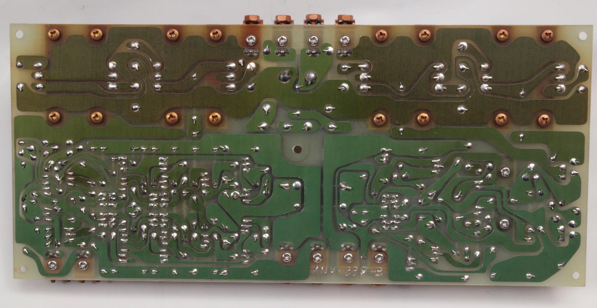C42. 修理前 定電圧電源基盤裏。基板はガラスエポキシ基板、銅箔は厚い。