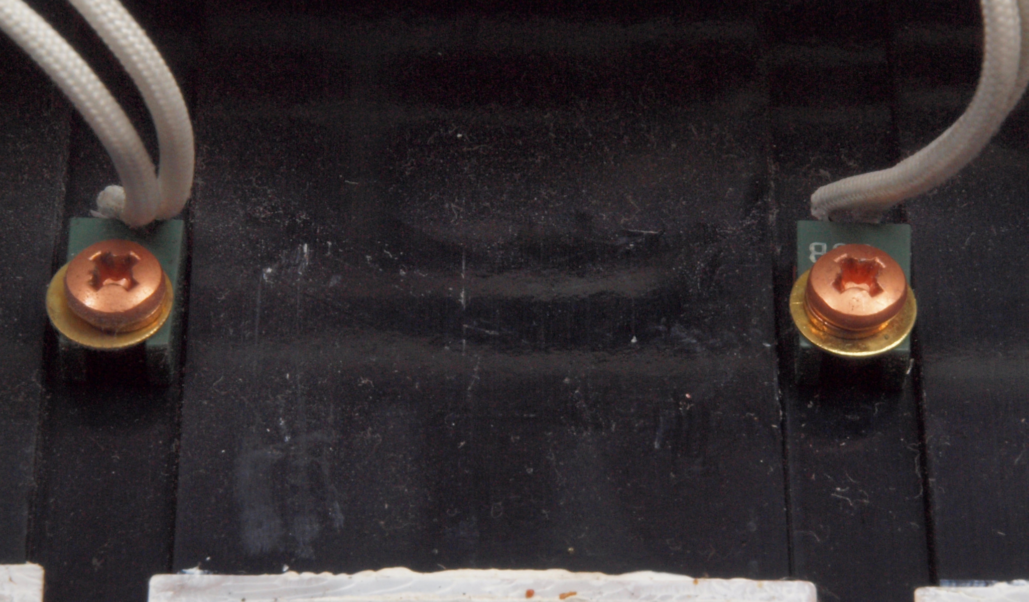 A45. 点検中 木ケースから取り出し、上から見る。 定電圧電源基板のフイルムコンデンサーのヒビ割れ その2。