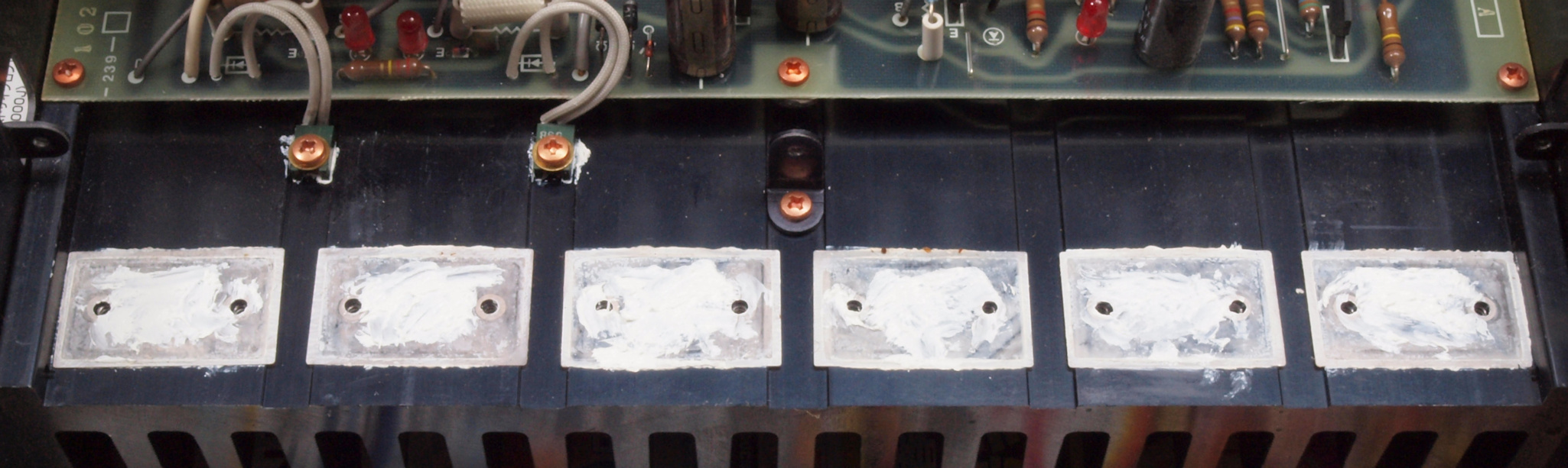 C25. 修理後 電圧アンプ終段TR(トランジスター)マイカー、放熱器温度感知終段TR(トランジスター)。