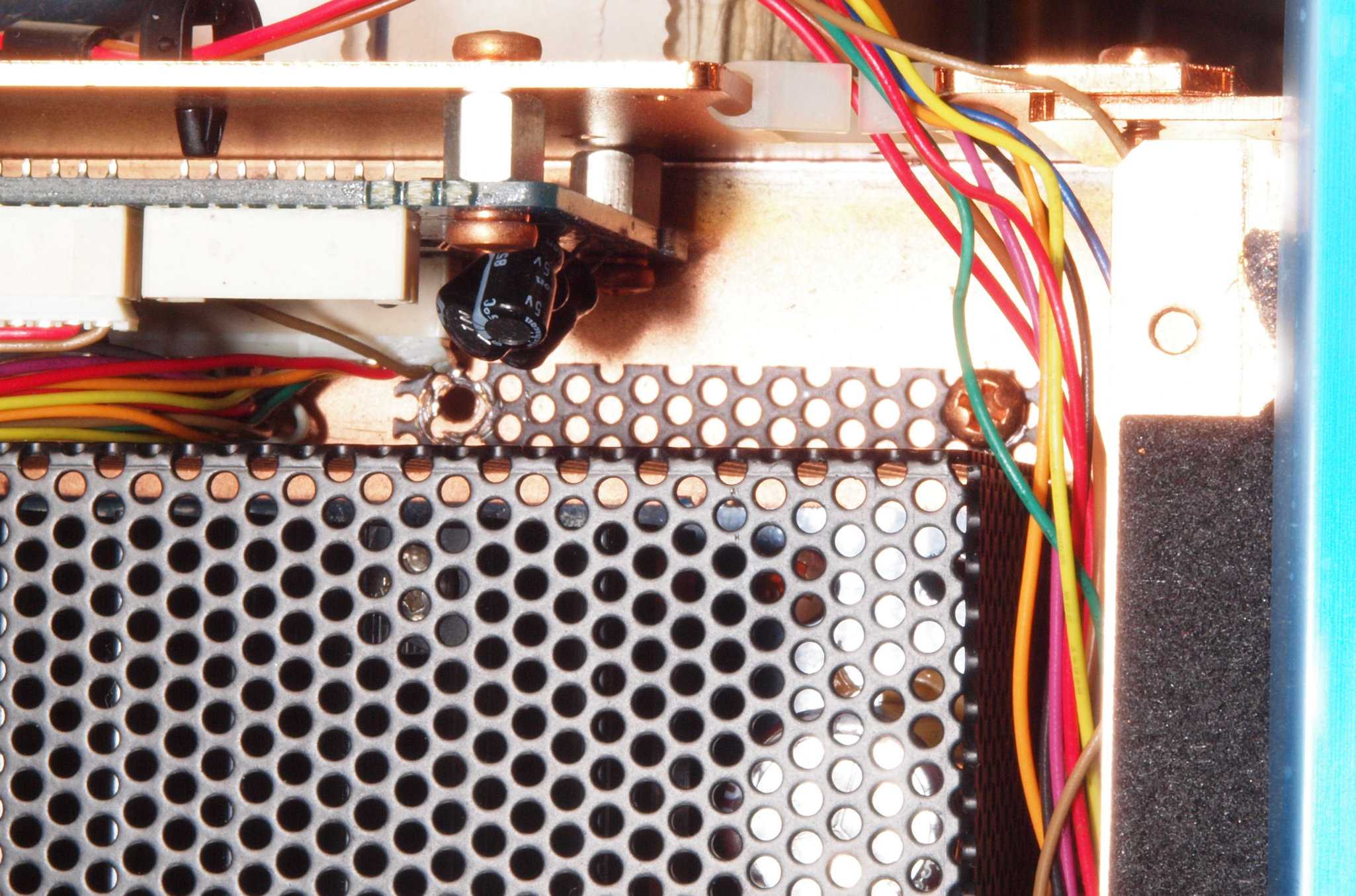 | CA6. 修理中 後パネル表SP出力接続取り付け部。SP接続端子に押され凹んでいる。 |