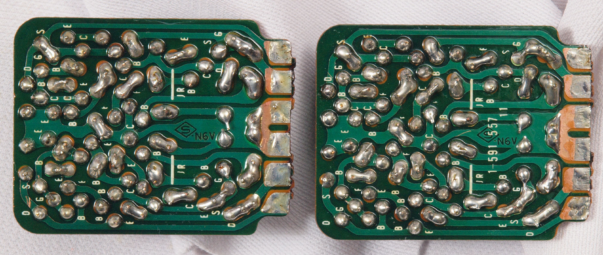 | C35. 修理中、HEAD−AMP定電源基板裏、洗浄後。 見た目は非常に綺麗だが、このままでは腐食する。 | ||||||||||||||||||||||||