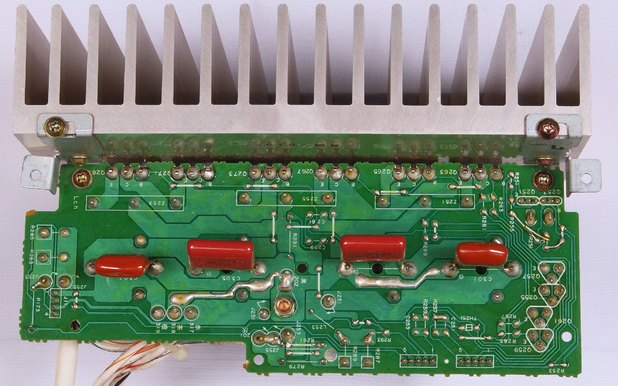 C44. 修理(半田補正)後 L側電圧コントロールAMP基板裏 半田を全部やり直す。 普通はこれで完成。