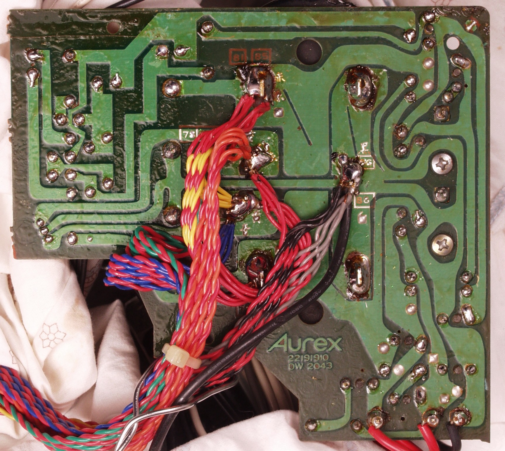 CAA. 修理前 電源SW基板裏+SP切り替えSW基板