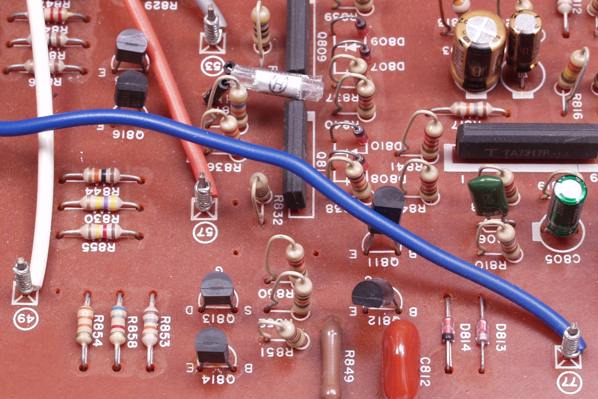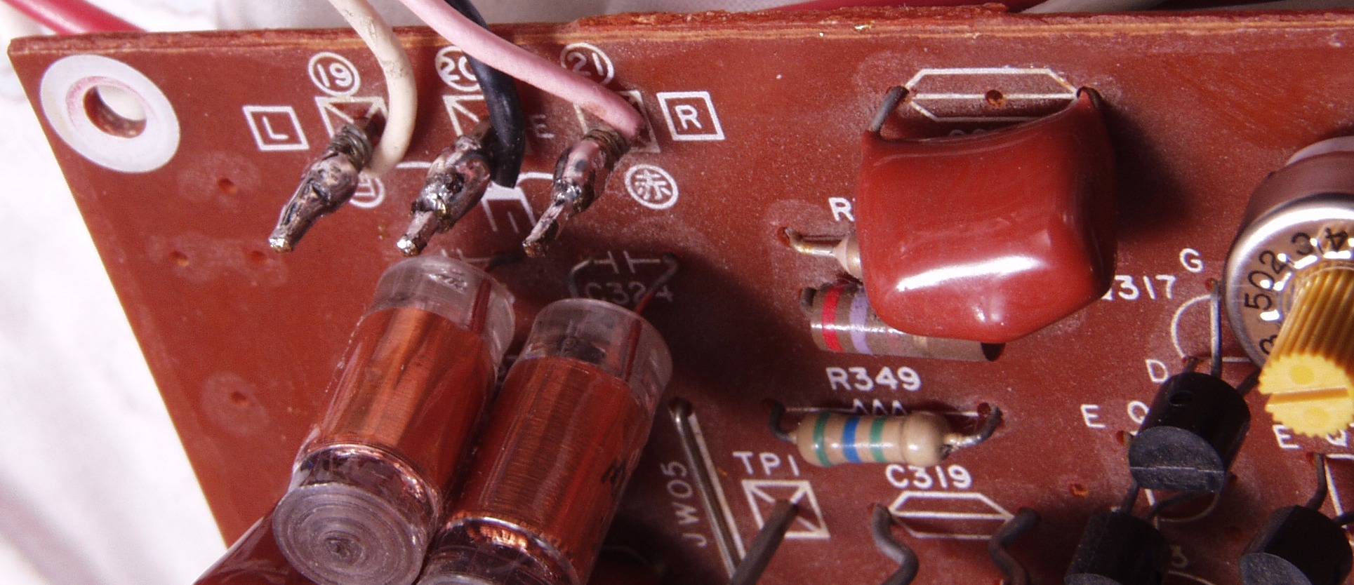 C7C1. 修理中 プリAMP基板裏、曲げる方向を考えて欲しい