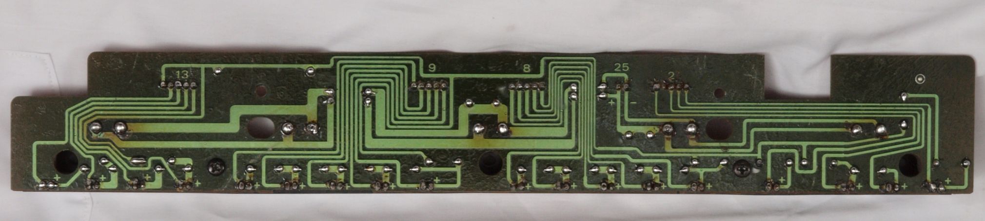C24. 修理(半田補正)後 終段・プロテクト基板裏。 半田を全部やり直す。