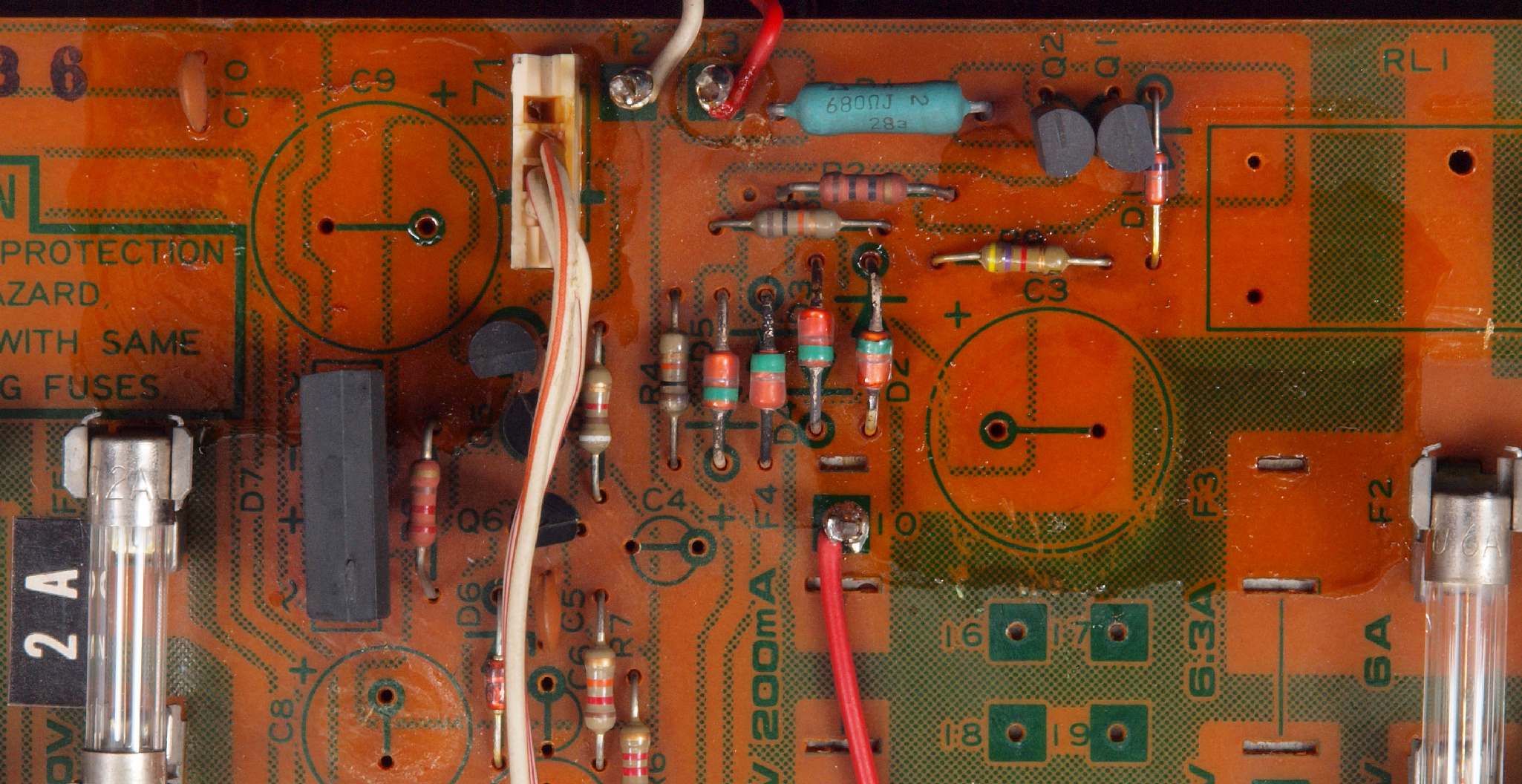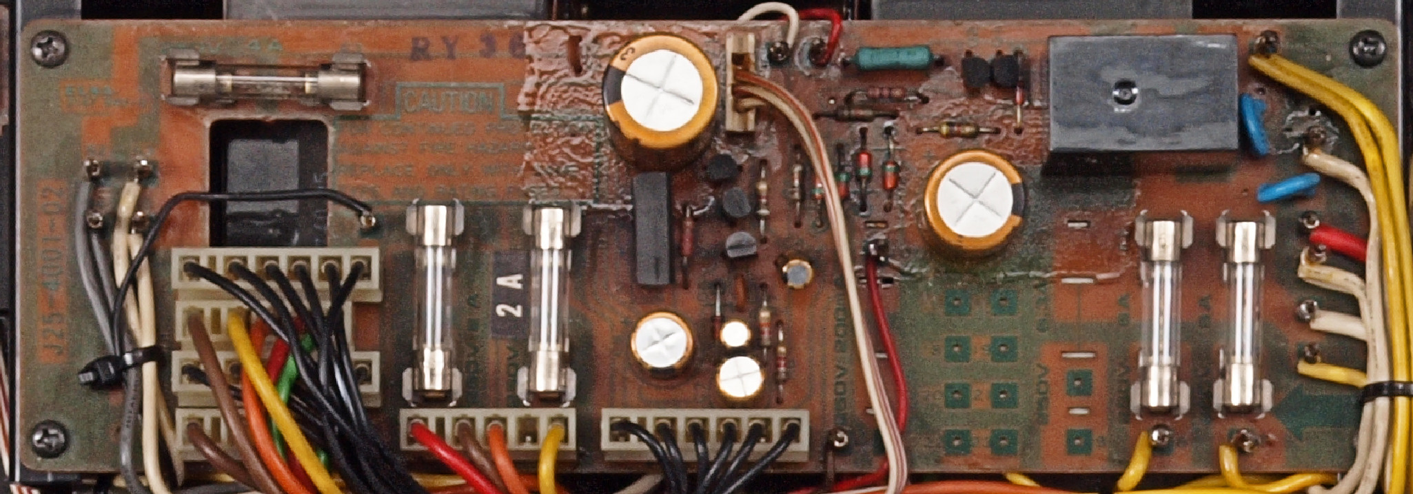 | C51. 修理前 EQ−AMP(equalize-amplifier)基板。 リレーが1個交換されている。 | ||||||||||||||||||||||||||||||||||||||||||||||||