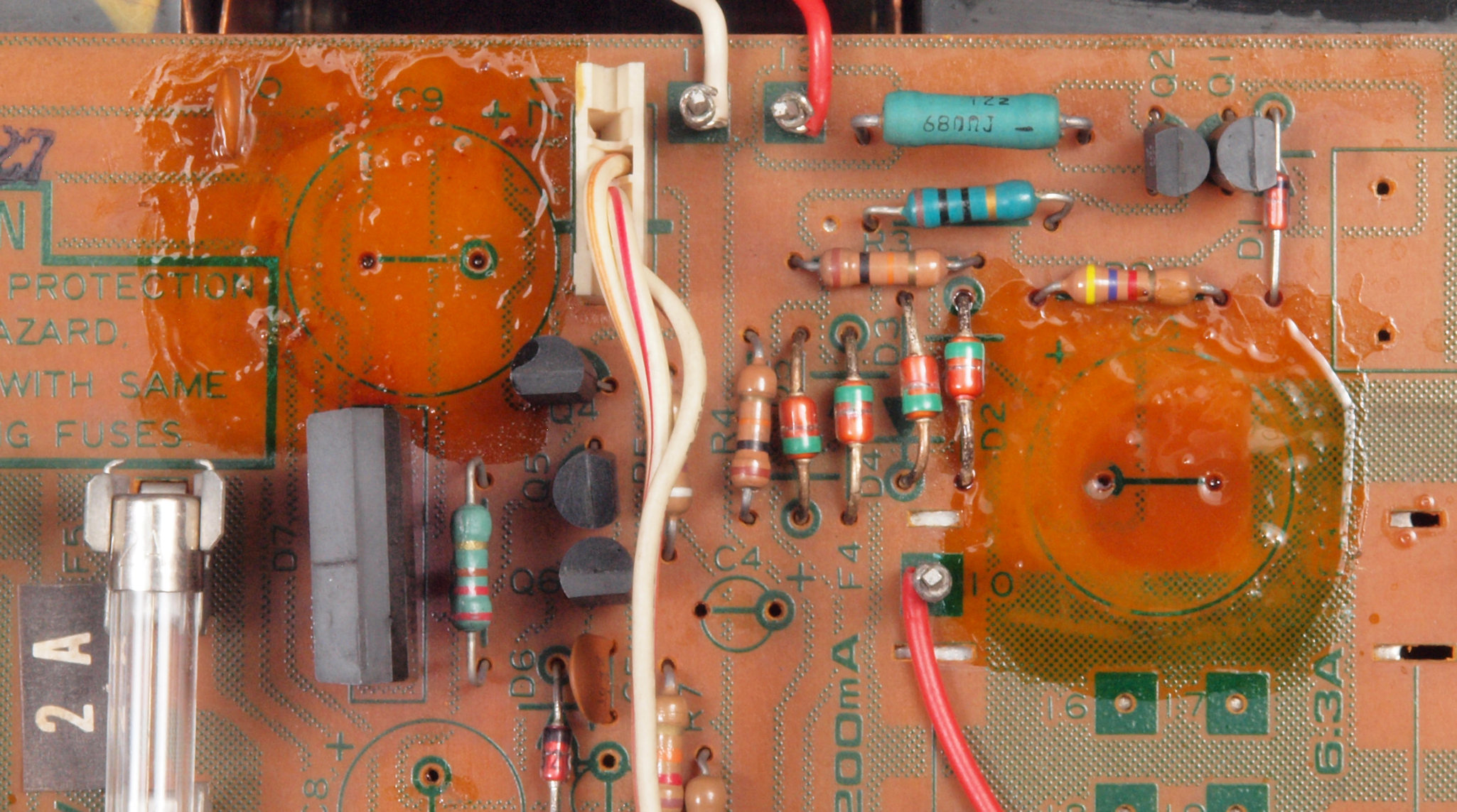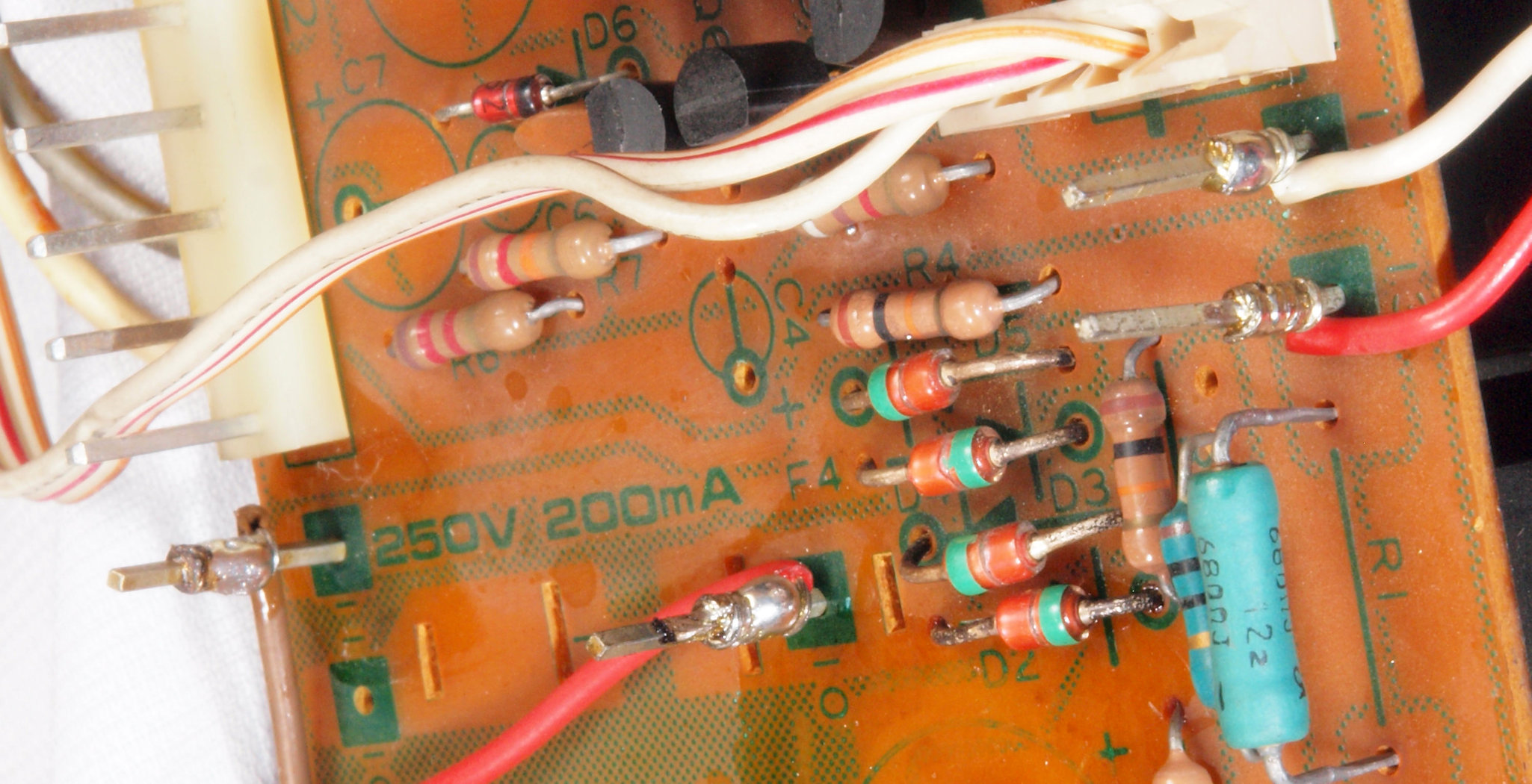 | P22. 修理中 電源部基板。 電解コンデンサー固定するトルエン溶媒の接着剤。 | ||||||||||||||||||||||||||||||||||||||||||||||||