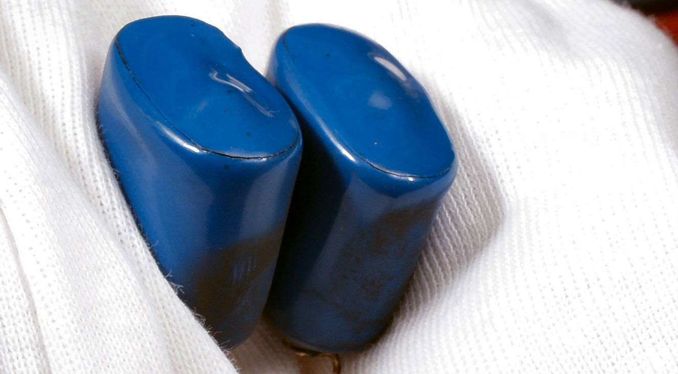 A−5A.  点検中 熱の為、頭にヒビが入った、大事なEQ−AMPのフイルムコンデンサー!