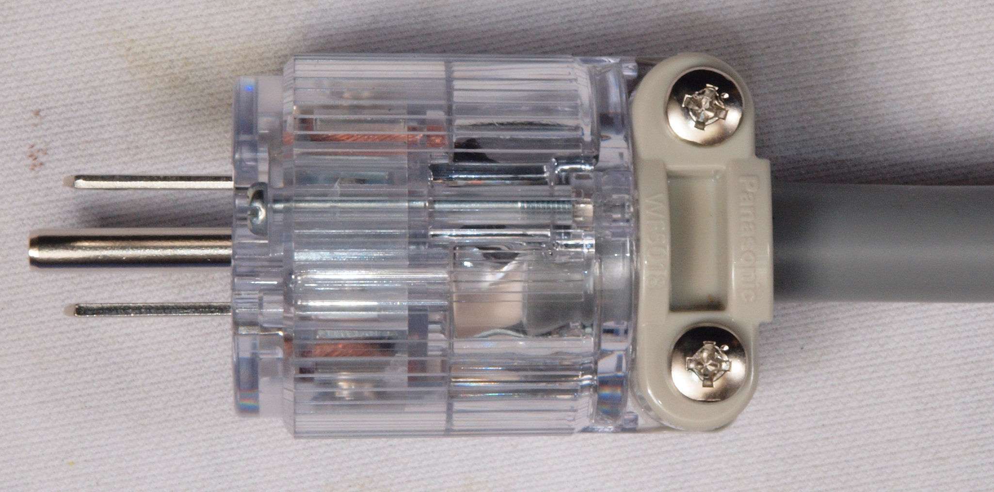 CF6. 完成 3Pプラグにケーブル取り付、反対側。 奥までしっかり芯線が入っている。