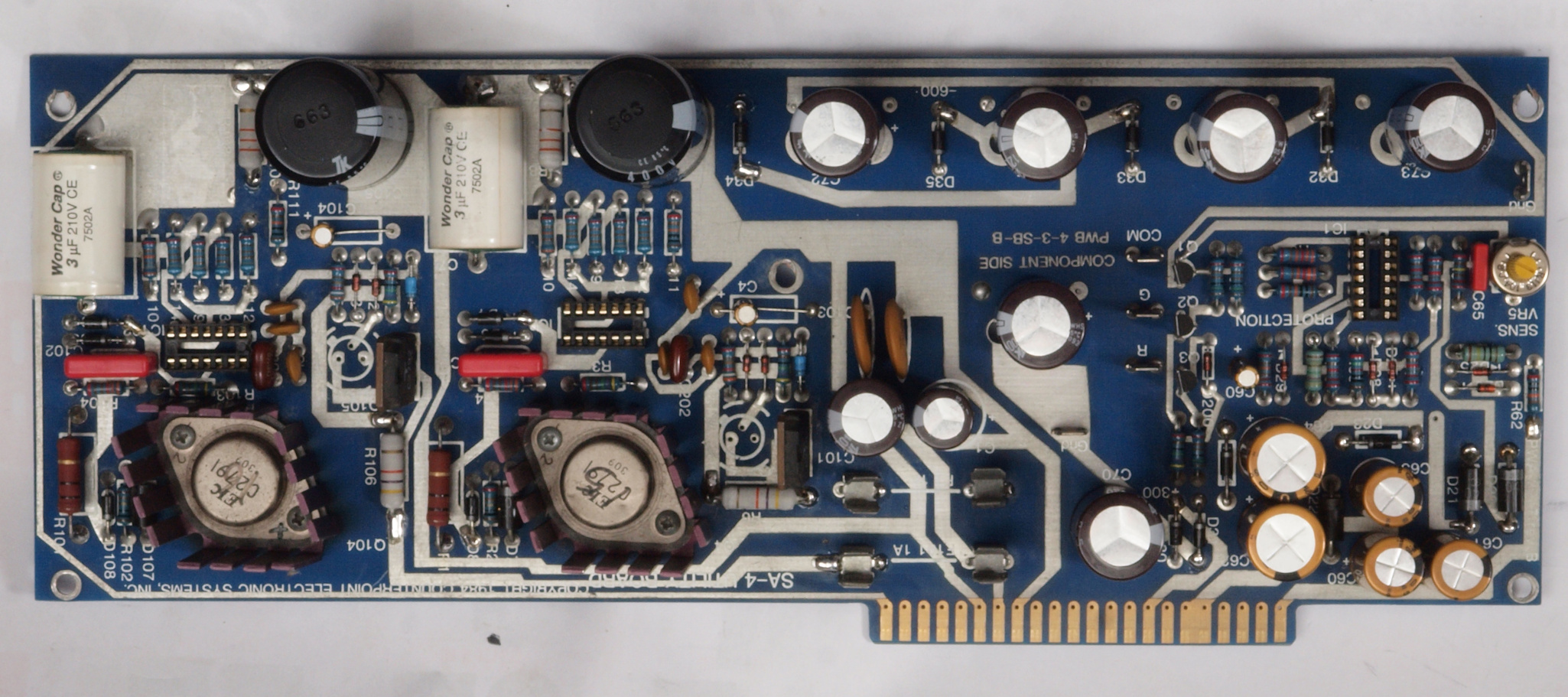 | C34. 修理後 電源基板。洗浄後、OP−AMP3個、電解コンデンサー18個、半固定VR1個、OP-AMPソケット3個交換 | ||||||||||||||||||||||