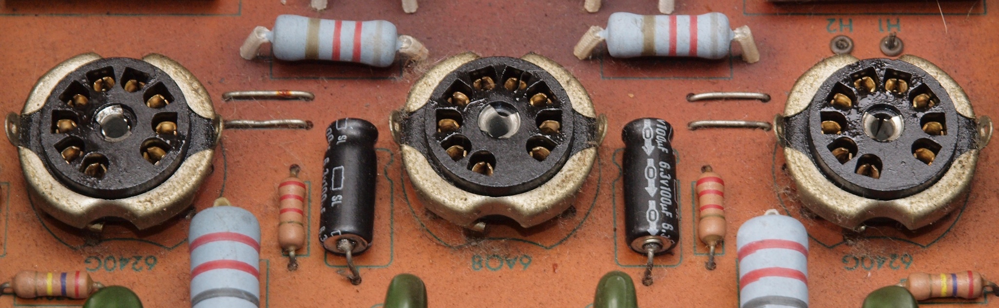 | 付属真空管。 左から6240G、1本目.2本目。 6AQ8。 | ||||||||||||||||||||||||||